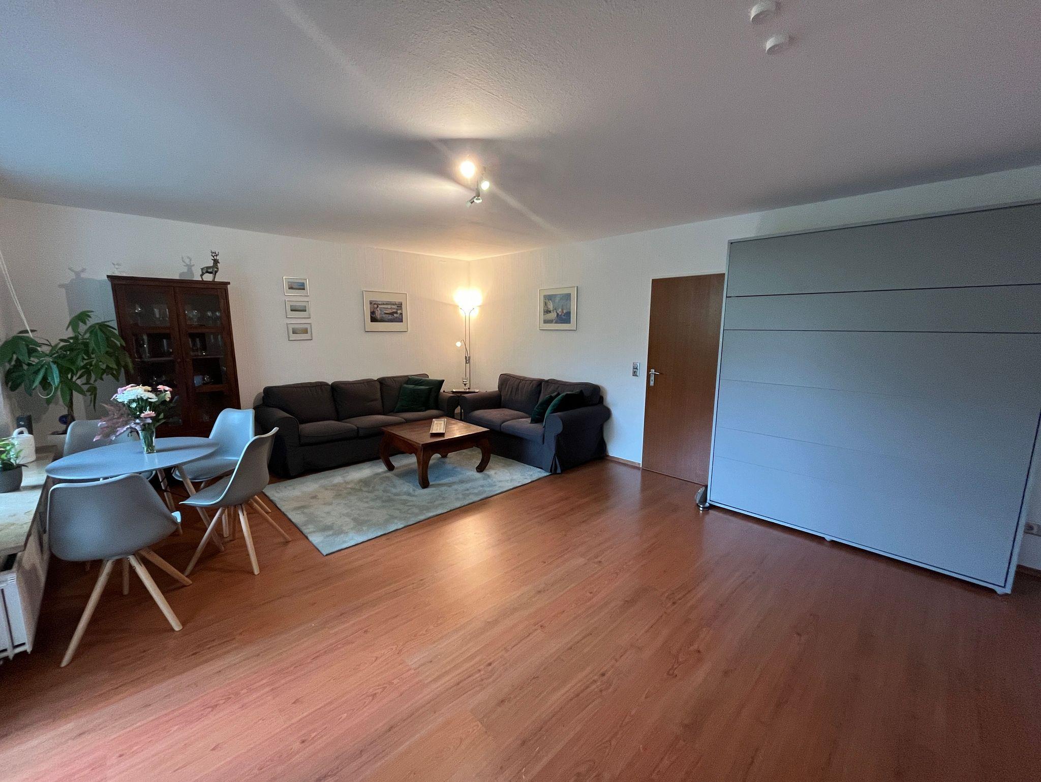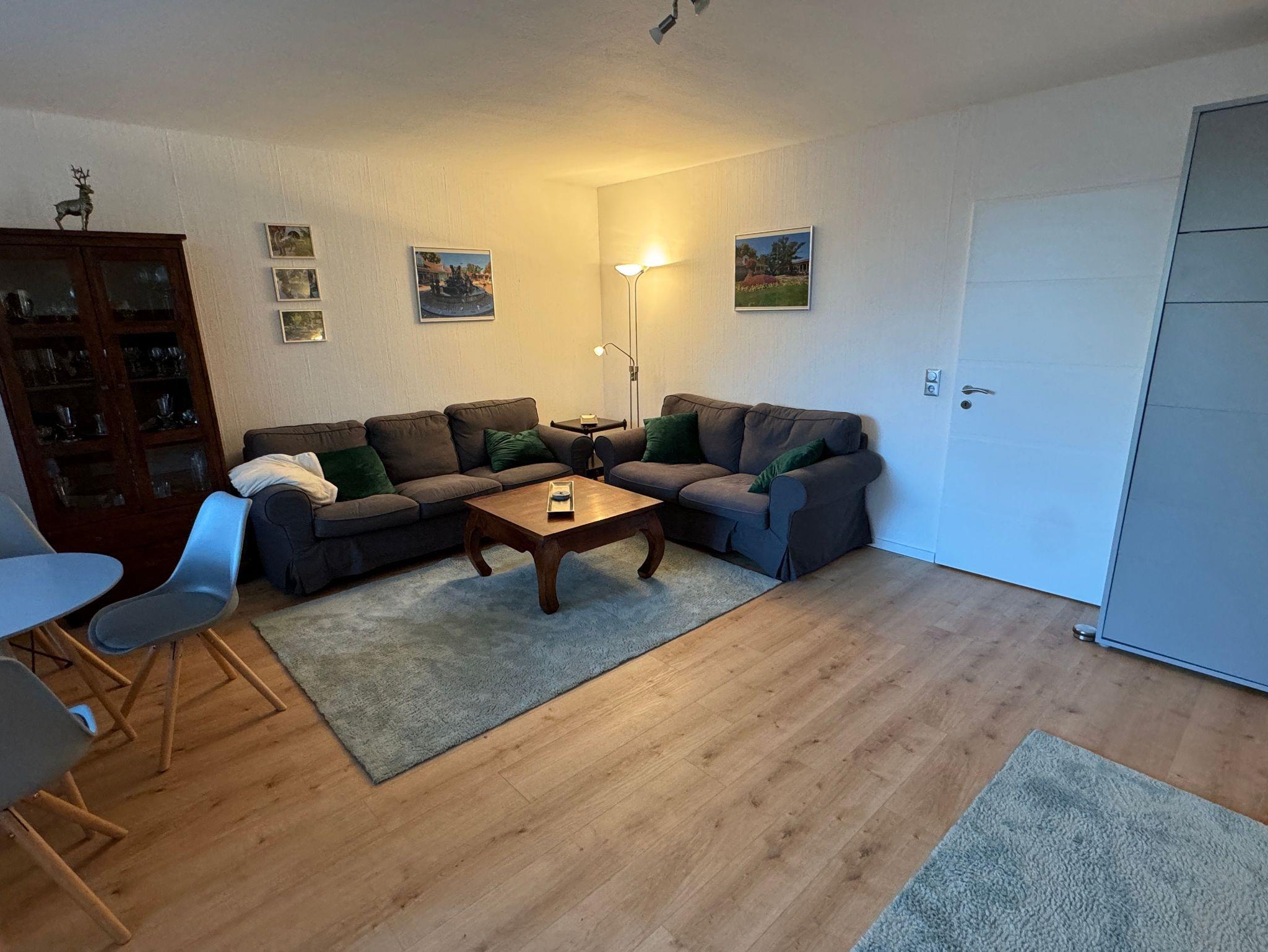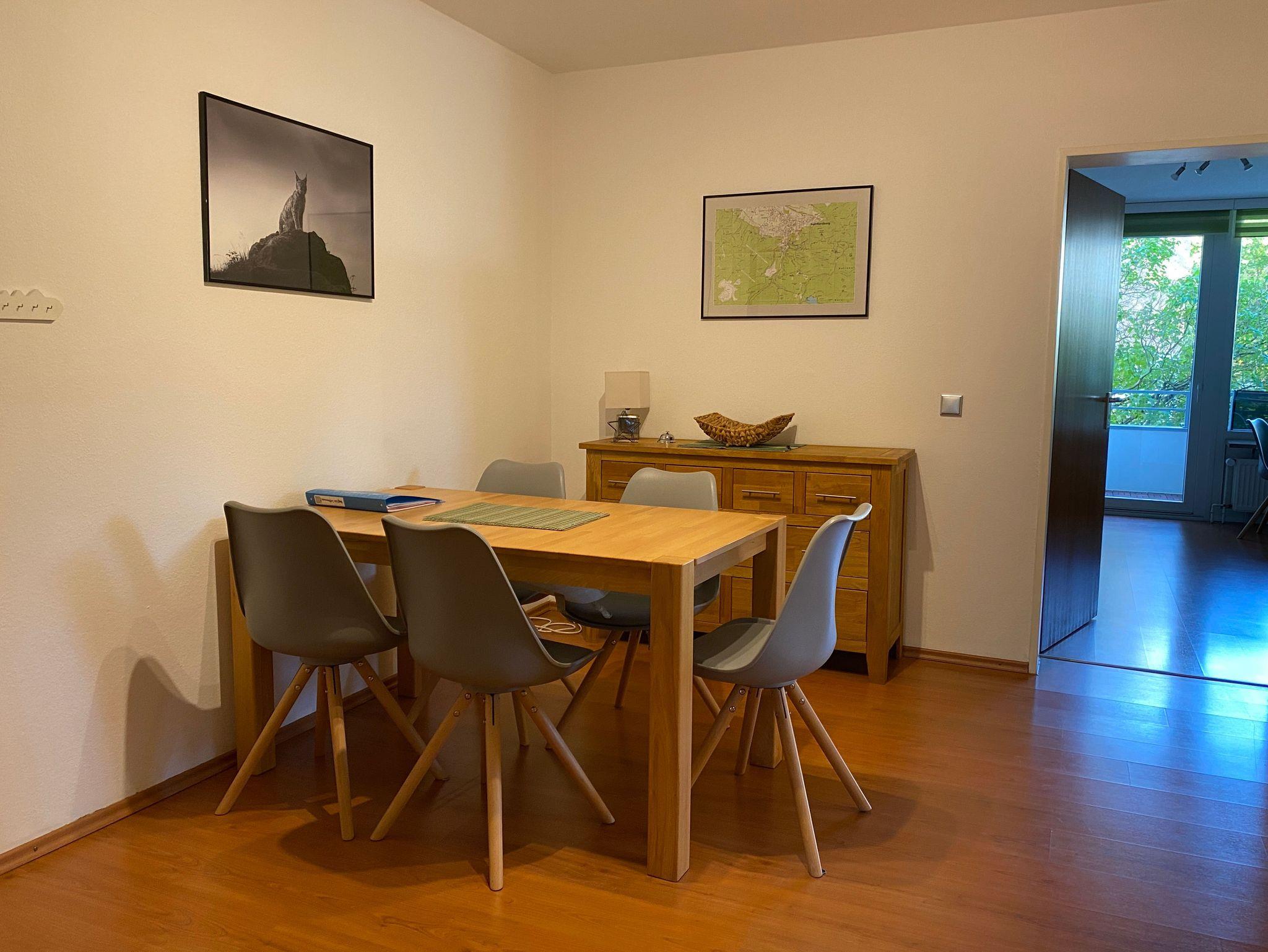 Das ca. 30 qm große Wohnzimmer lädt die Gäste zu entspannten, gemütlichen Abenden nach gelungenen Harzausflügen ein. Bei mehr als 4 Gästen steht hier optional, in Form eines Schrankbetts mit 160x200 cm Liegefläche, ein weiterer Schlafplatz zur Verfügung. Große Fenster lassen die Abendsonne hinein und von hier erfolgt der Zugang zum Balkon mit Blick auf die Radau ? Bad Harzburgs Fluss.