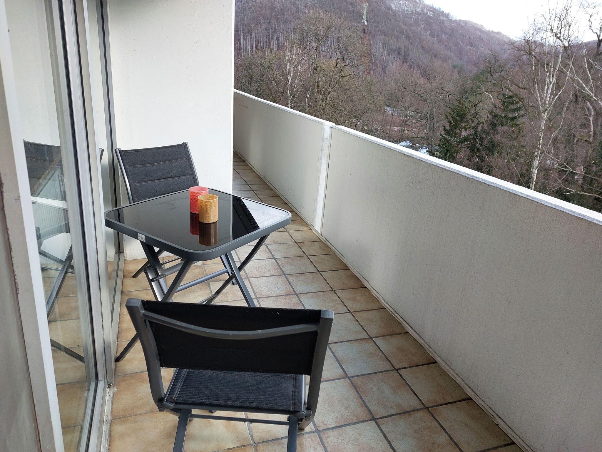 Das Schwalbennest erlaubt den Blick direkt auf den Burgberg, Baumwipfelpfad, die Gondel und den Wald. Der 12 m lange Balkon paart dabei den ganzen Tag Sonne mit der Ruhe des Waldes und ist von Ess-, Wohn- und Schlafbereich betretbar. Sollte die Sonne einmal zu viel scheinen, gibt es Markisen, um das Schwalbennest mit Schatten zu versorgen! Auch findet man auf dem Balkon einen Trockner.