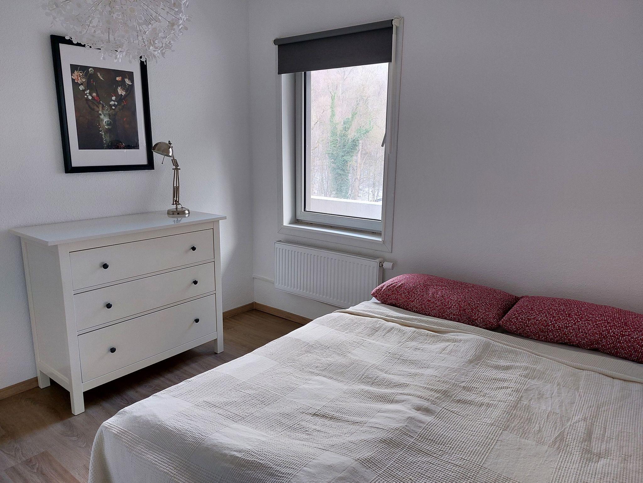 Das rechte Schlafzimmer ist ebenso wandelbar, aus einem 80x200 kann man im Nu ein Doppelbett 160x200 machen. Der Blick aus beiden Zimmern bietet den Blick auf die Natur und lädt zum Träumen ein.