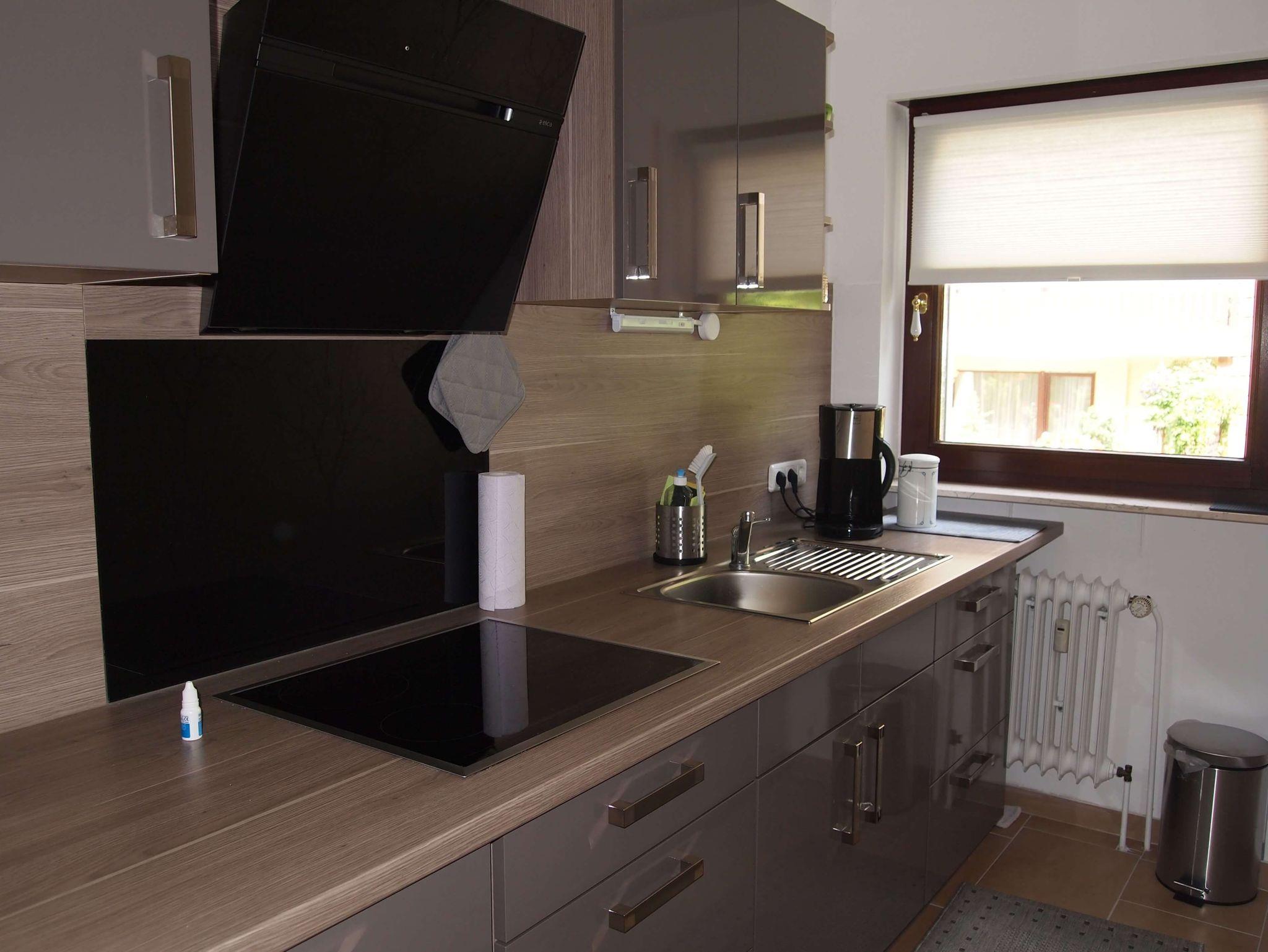 Die moderne Hochglanzküche wartet mit allem auf, was eine Küche haben muss: Cerankochfeld, Backofen, Kopffreie Dunstabzugshaube, Mikrowelle, Kühlschrank mit Gefrierfach, Geschirrspüler, Kaffeemaschine, Toaster uvm.