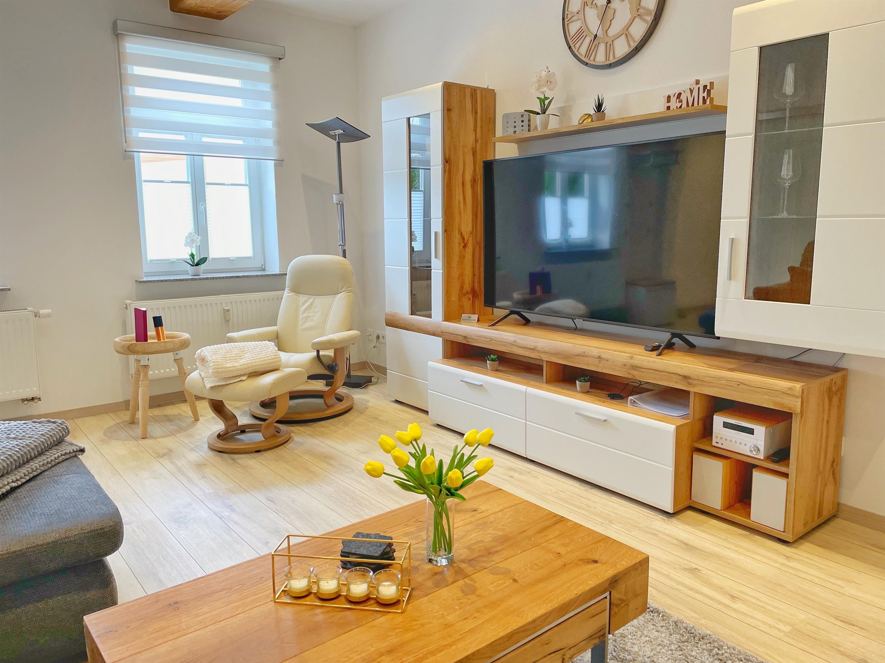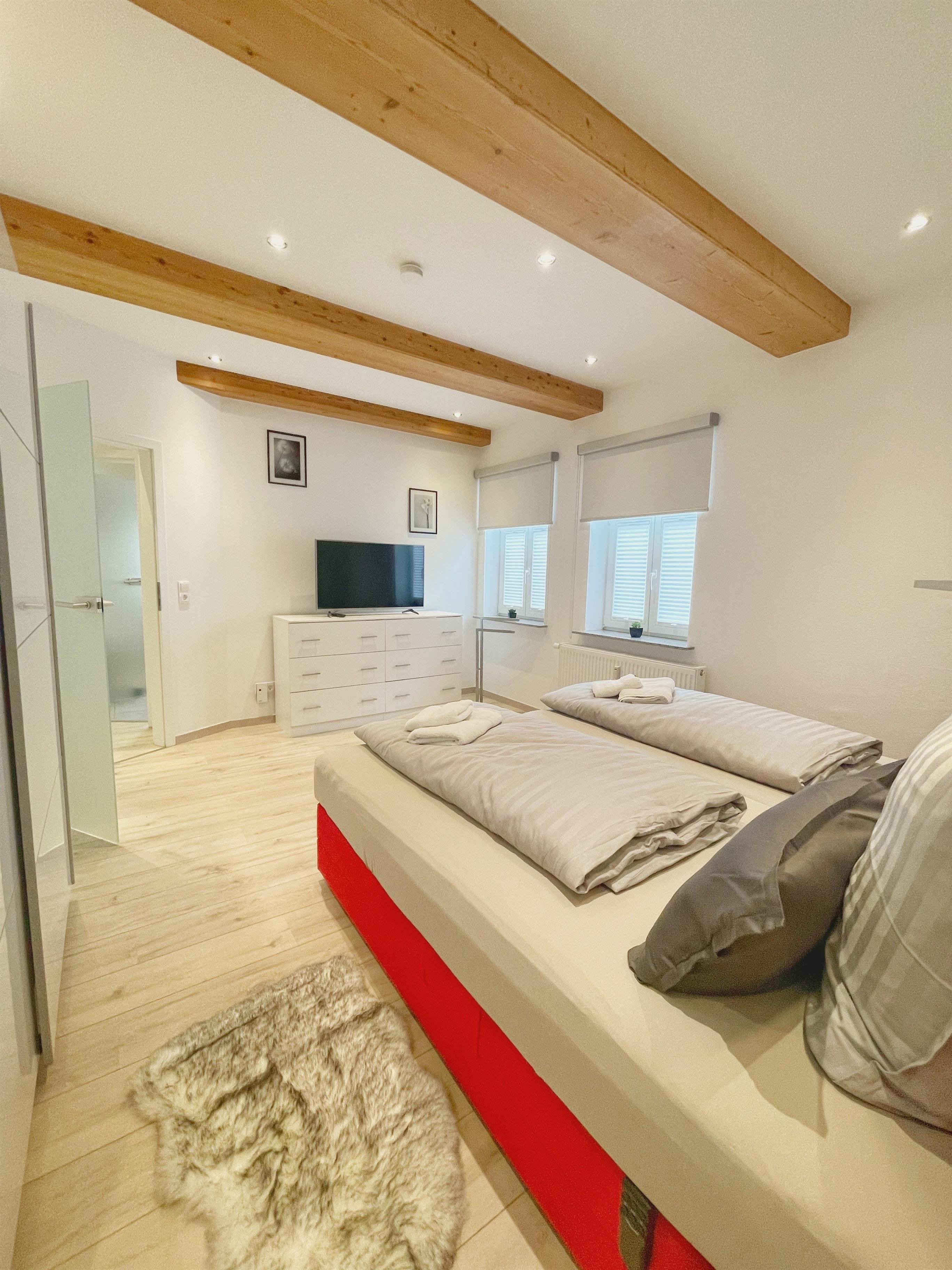 Sowohl Wohnzimmer als auch Schlafzimmer haben wir mit TV Geräten ausgestattet.