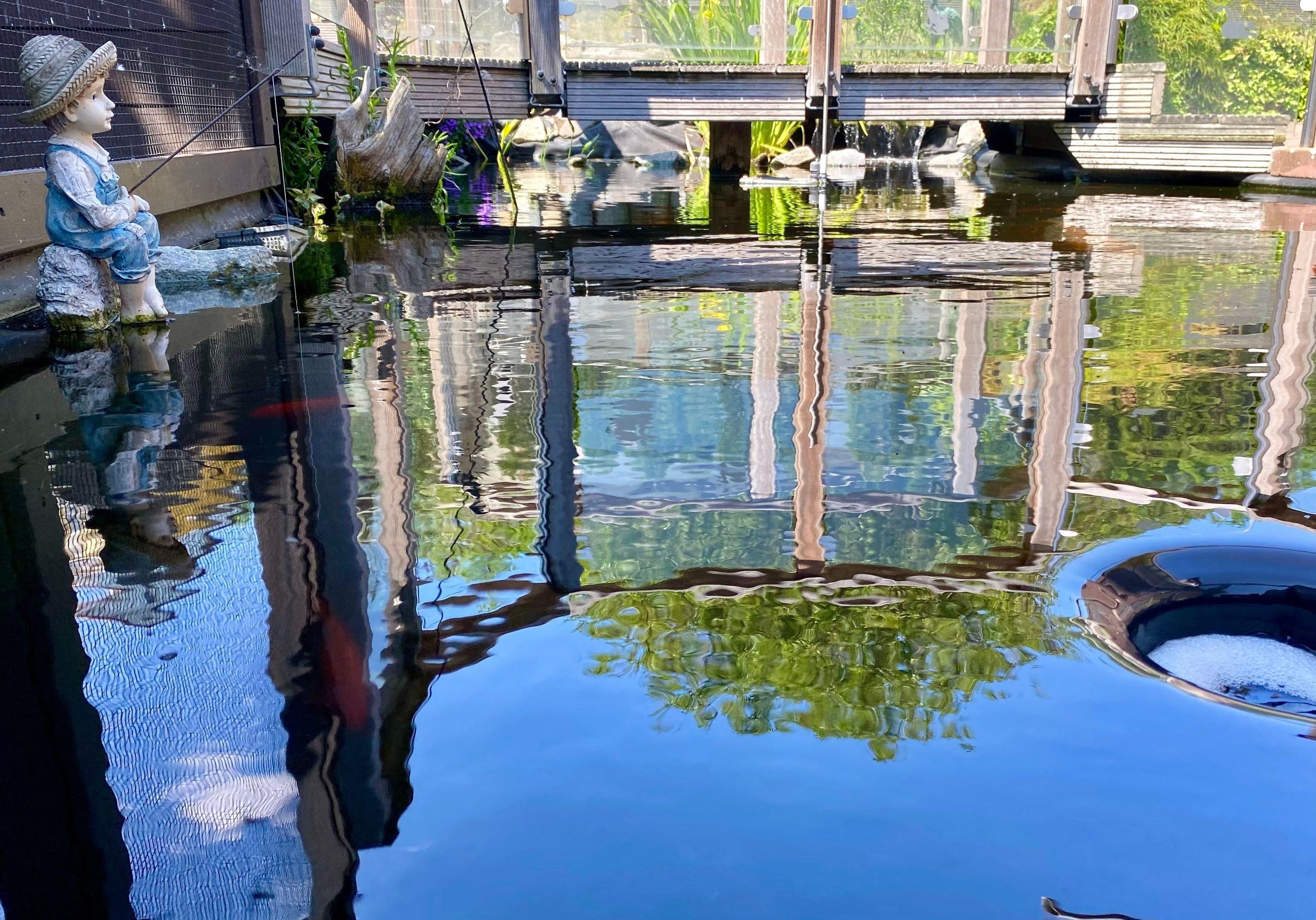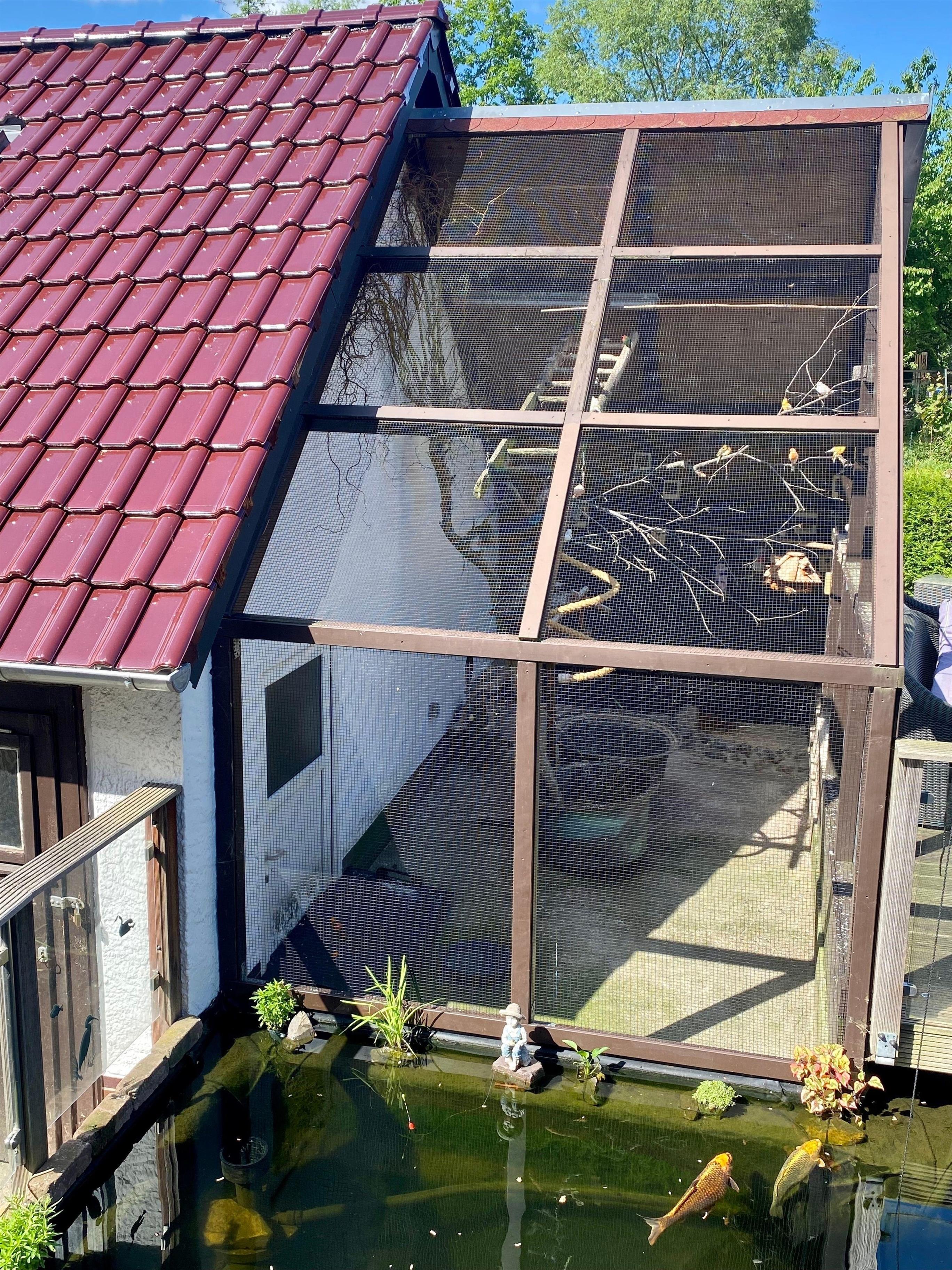 Auf dem Grundstück befindet sich ein großer eingezäunter Gartenteich, daher bitten wir Sie auf Ihre Kinder besonders aufzupassen.