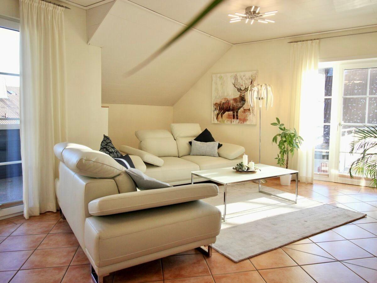 Eine Ferienwohnung mit klarer Linie und angenehmer Atmosphäre. Hell, gepflegt und durchdacht eingerichtet, mit 2 Balkonen, Kaminofen und viel Raum zum Ankommen und Wohlfühlen.