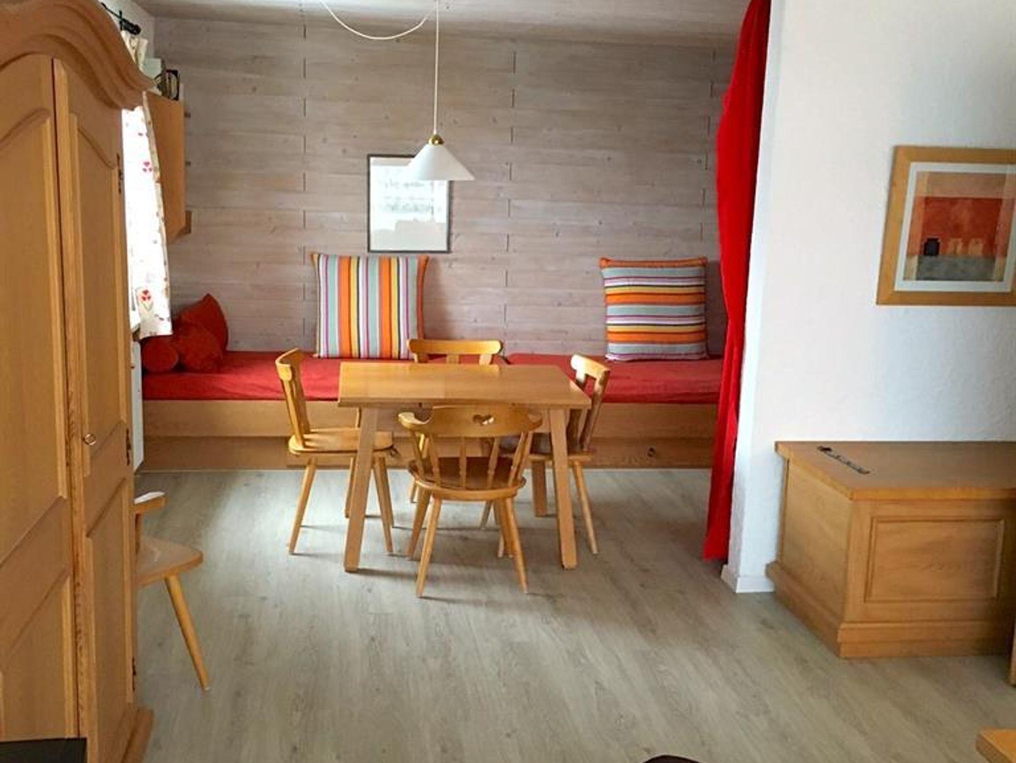 Ferienwohnung am südl. Ortsrand von Oberjoch mit schönen Ausblicken auf die Hausberge Iseler und Ornach. Balkon über die gesamte Länge der Wohnung. Großes Wohn-/Ess-/Schlafzimmer, mit gemütlicher Sitzgruppe, Geschirrschrank, Truhe, Regalen, Fernseher, DVD-Player; Essgruppe für bis zu 6 Personen; 2 Schlafcouchs 90x200cm, Kleiderschrank. Schlafzimmer mit Doppelbett und Kleiderschränken. Küche komplett eingerichtet inkl. Spülmaschine. Bad mit Badewanne und Baddusche. Separate Toilette.
