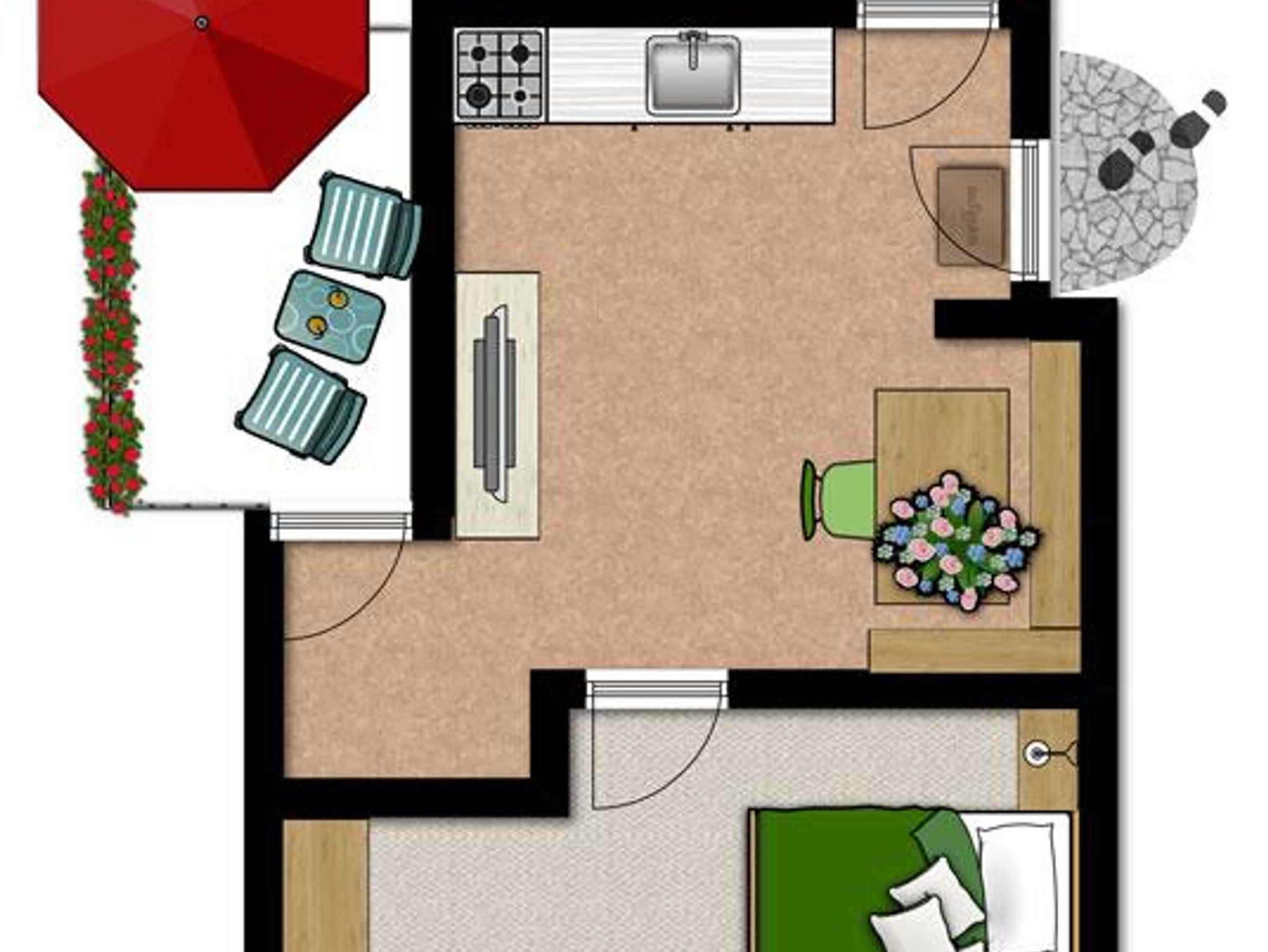 Kuschlige 3-Sterne Ferienwohnung für zwei, satten Fernblick in die Berge, windgeschützer Südbalkon,36m² groß, Schlafzimmer, gemütliche Wohnküche mit gepolsterten Eckbank, Flachbildschirm, Küchenzeile mit 2-Plattenherd, Microwelle, Kühlschrank, Kaffeemaschine, Toaster, Eicherkocher, reichlich Ess- und Kochgeschirr. Badezimmer mit Dusche und Kneippgießhandstück, Waschbecken und WC. Bett- Frottee und Küchenwäsche in der Wohnung.
