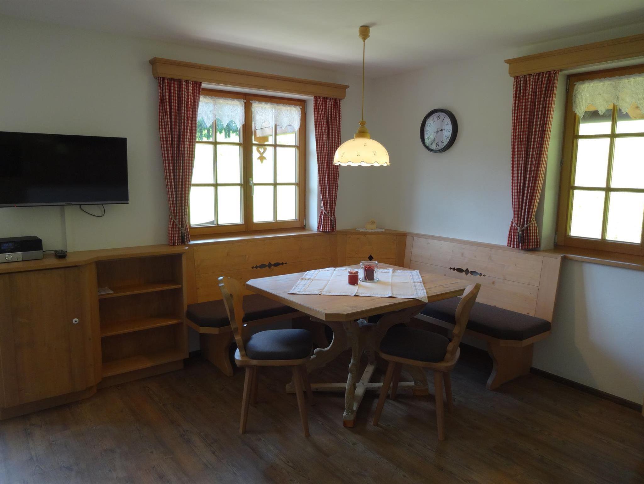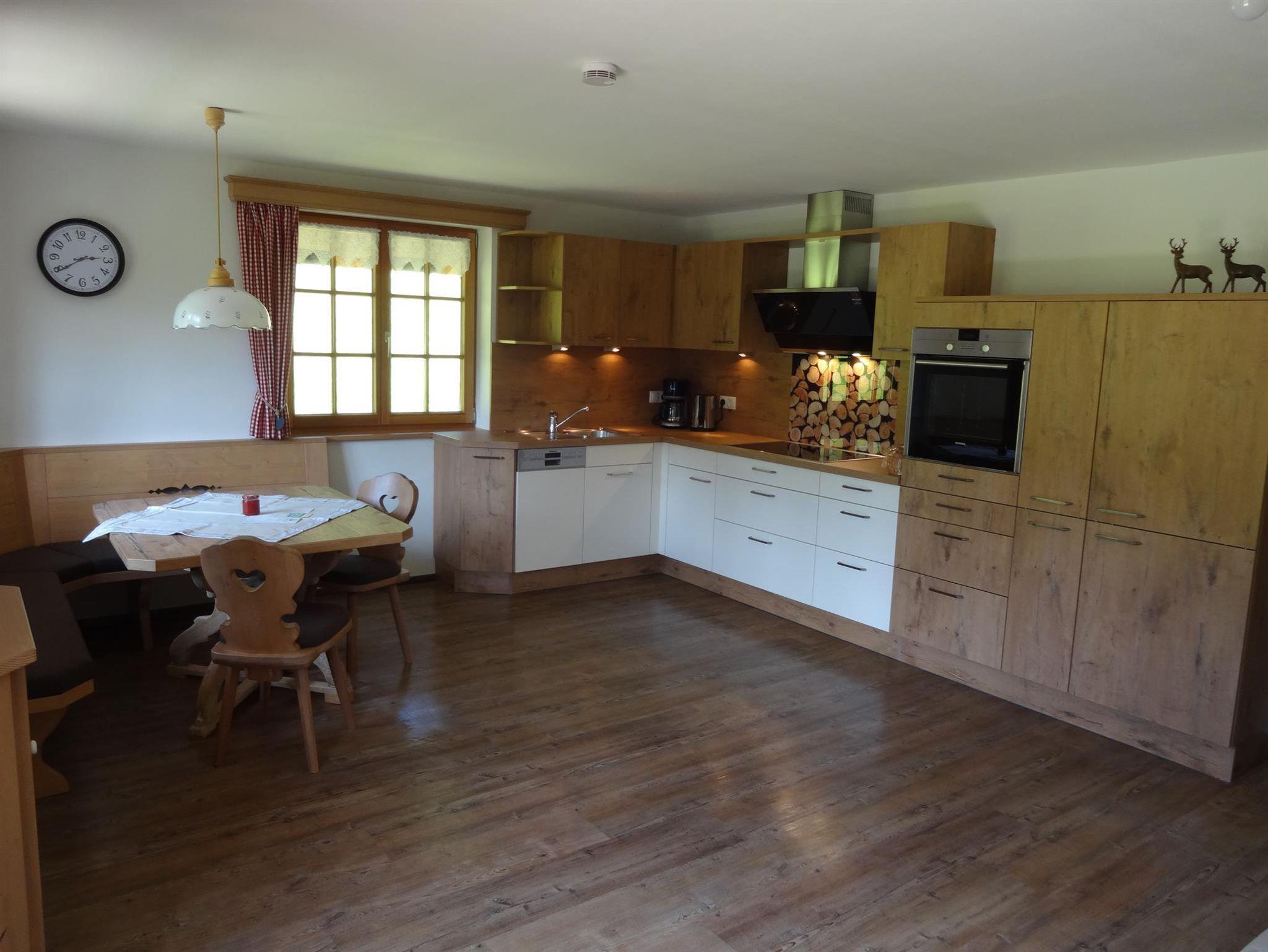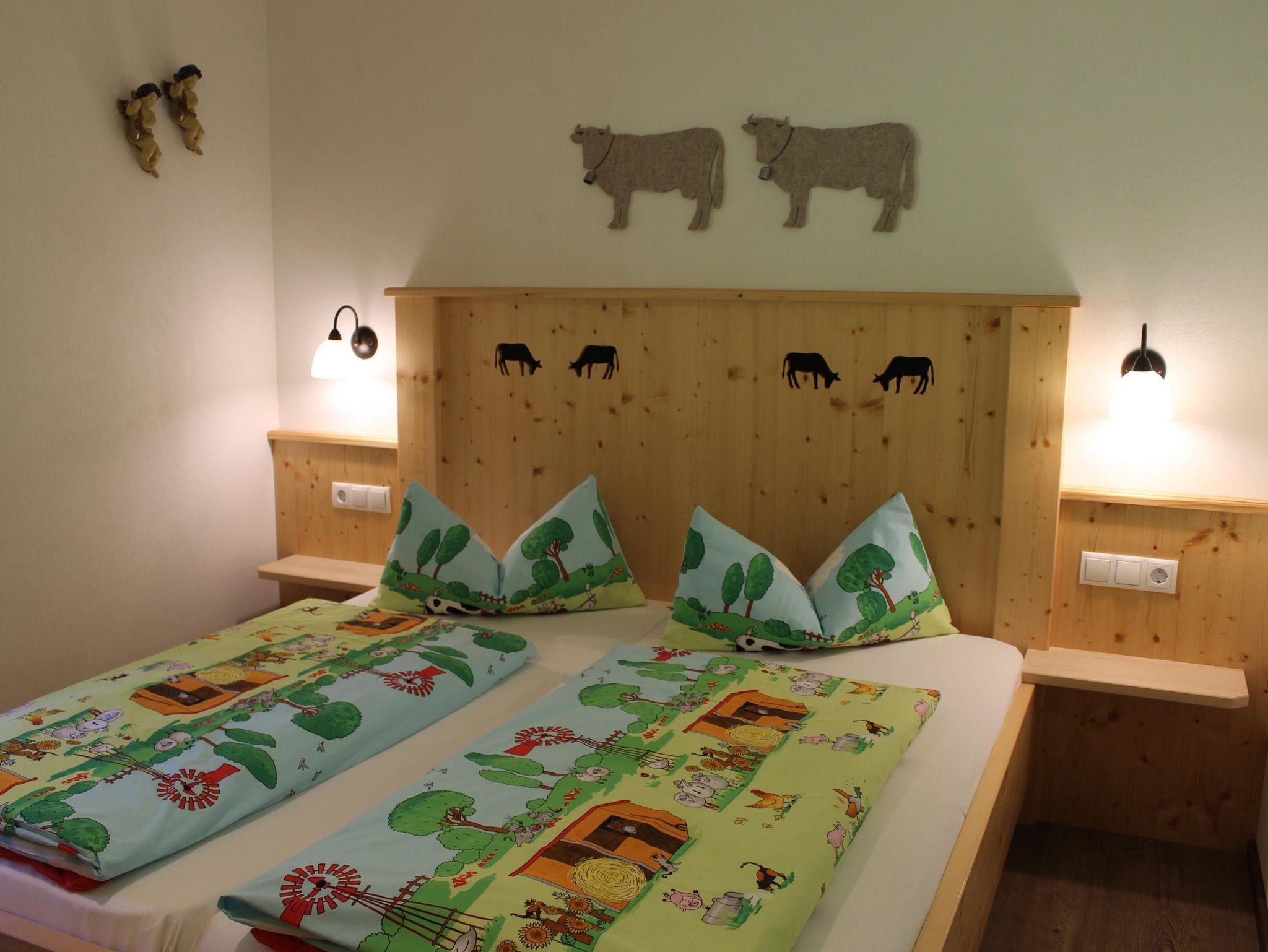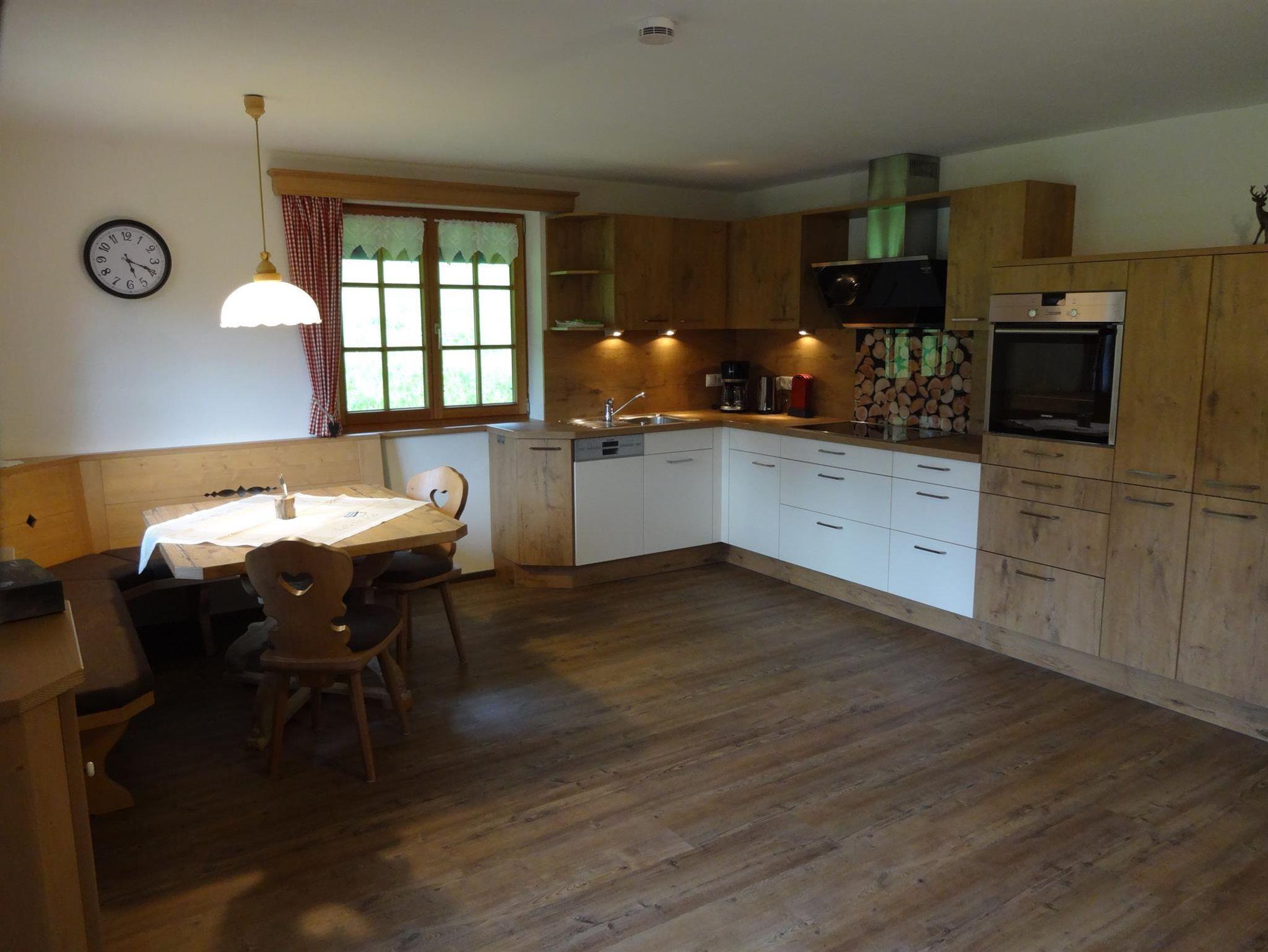 Geräumige Ferienwohnung, hochwertig und liebevoll vom Schreiner eingerichtet. Wohnessraum mit gemütlicher Eckbank und großer Küchenzeile, die komfortabel ausgestattet ist. Zwei Schlafzimmer, eines davon in Zirbenholz, für den gesunden Schlaf. Großes Bad mit begehbarer Dusche, WC extra. Mit etwas Glück erleben Sie unsere Kühe direkt bei Ihnen an der Terasse.