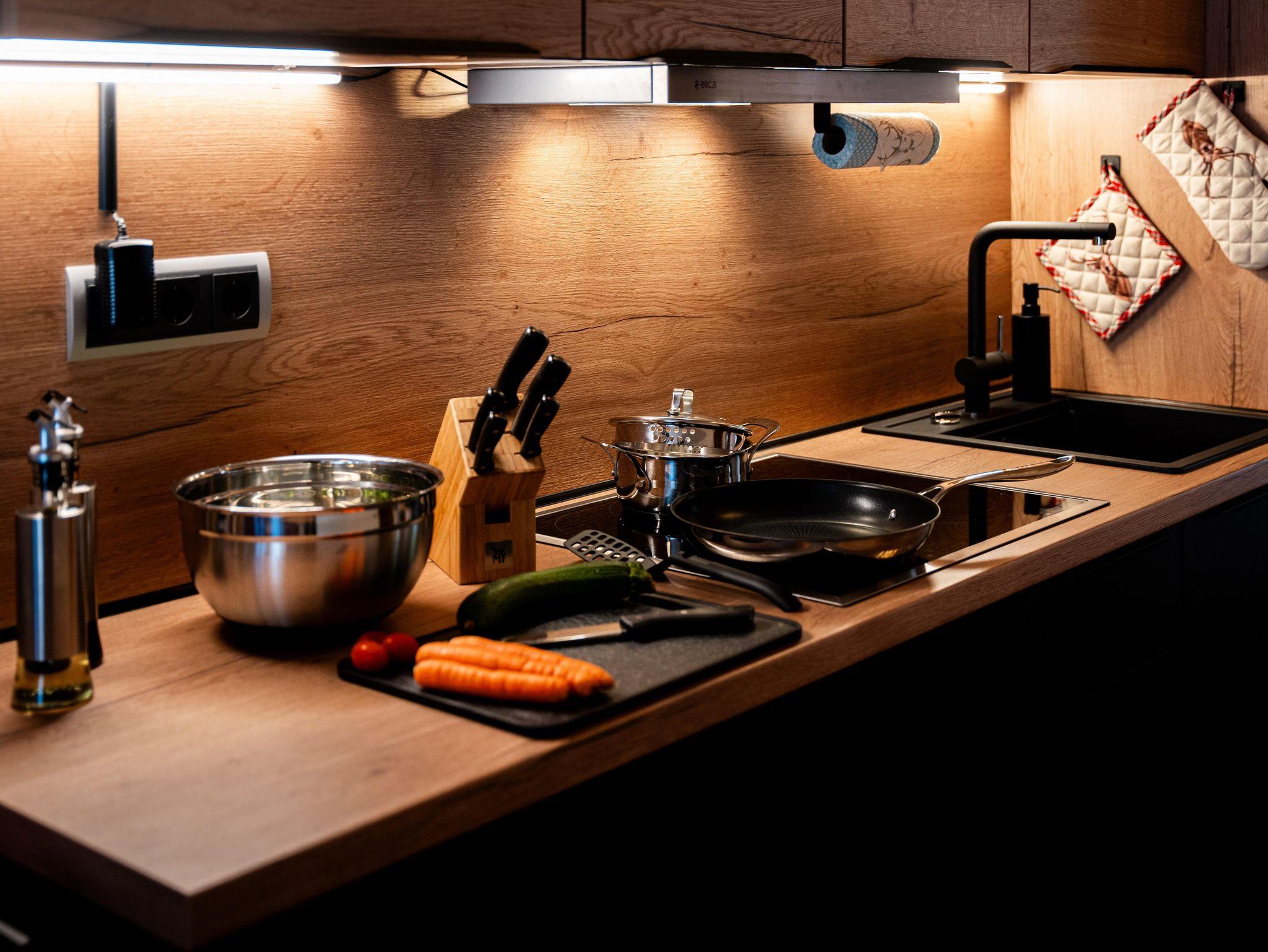 Die moderne und perfekt ausgestattete Küche lässt keine Wünsche offen.