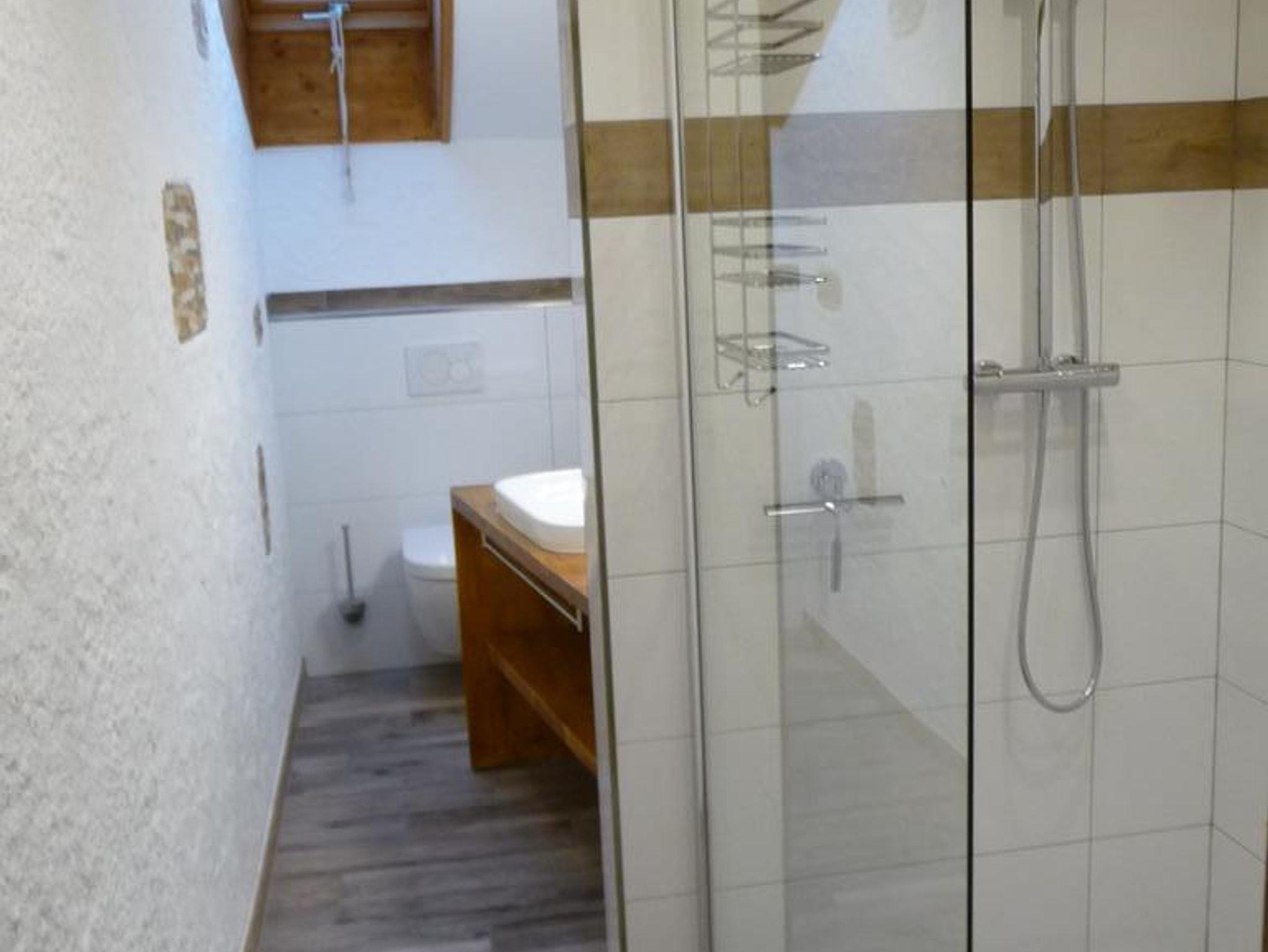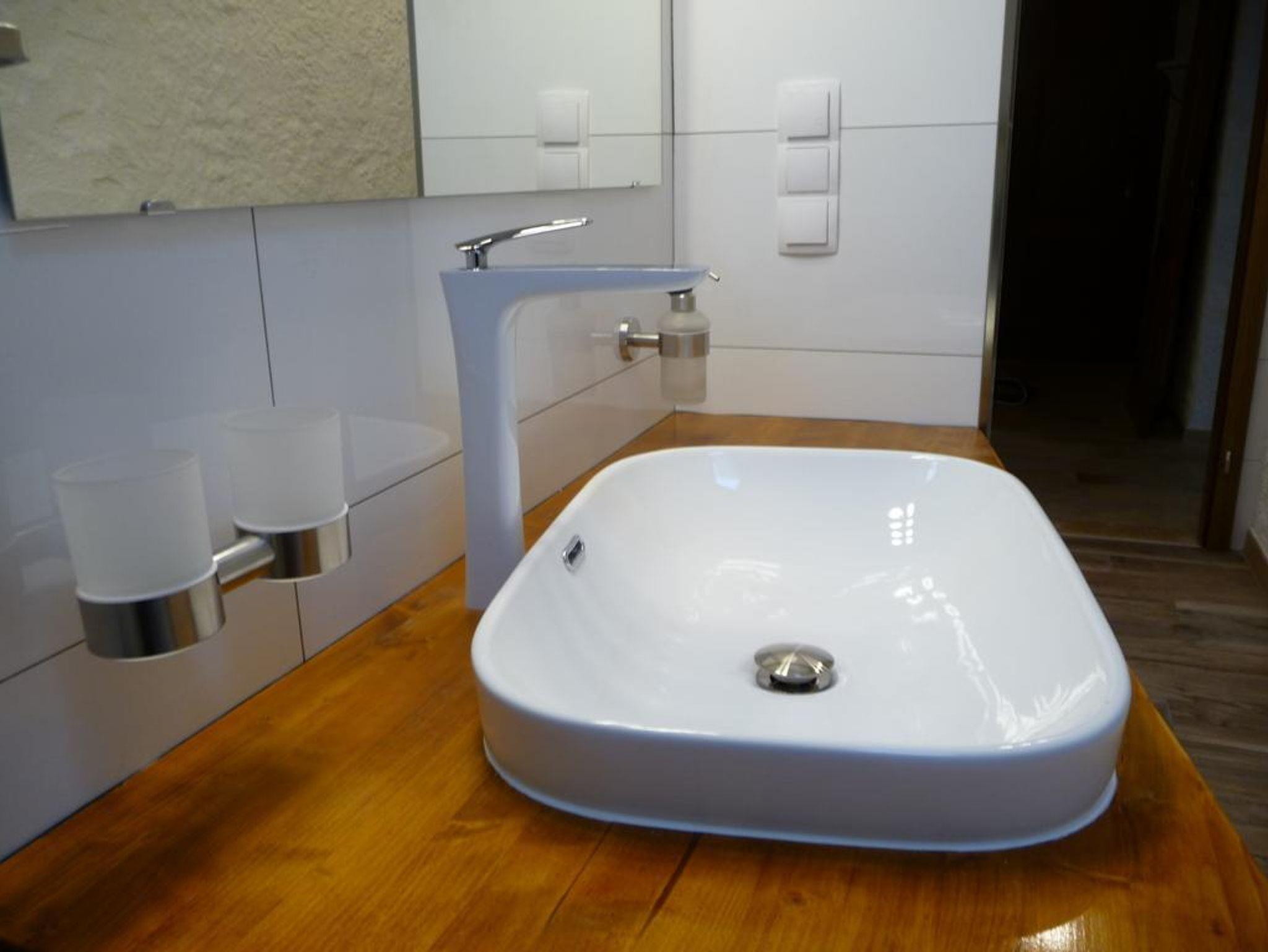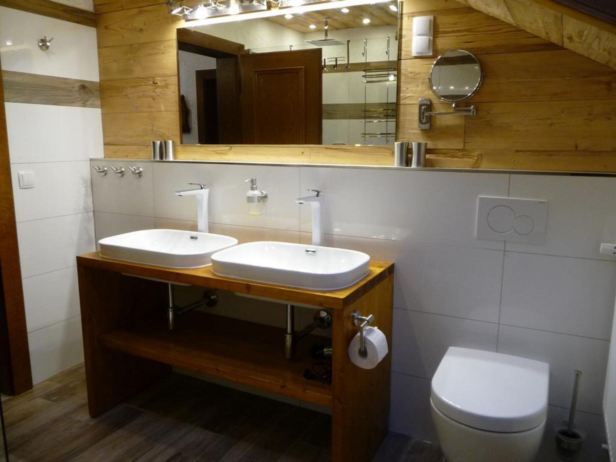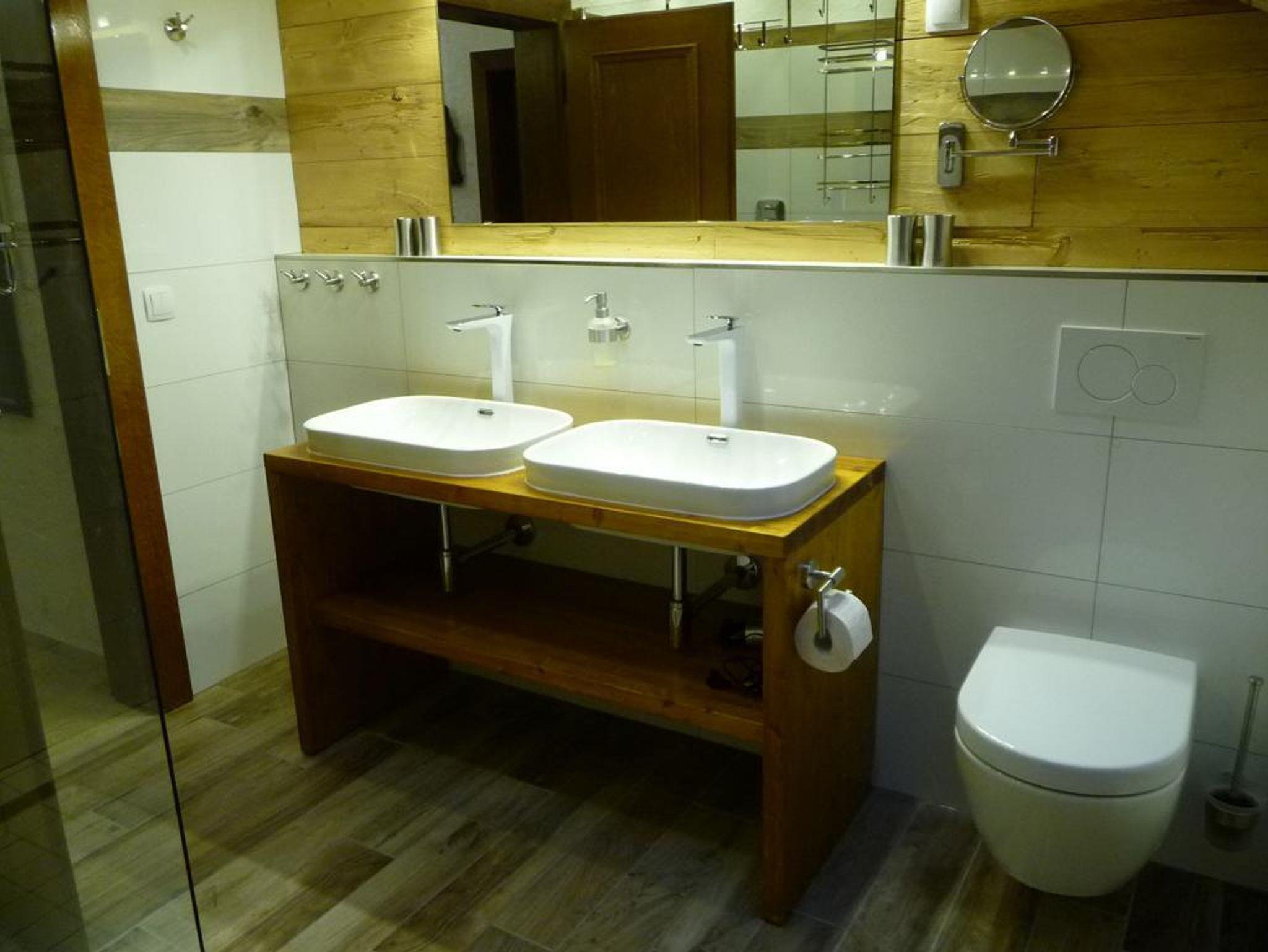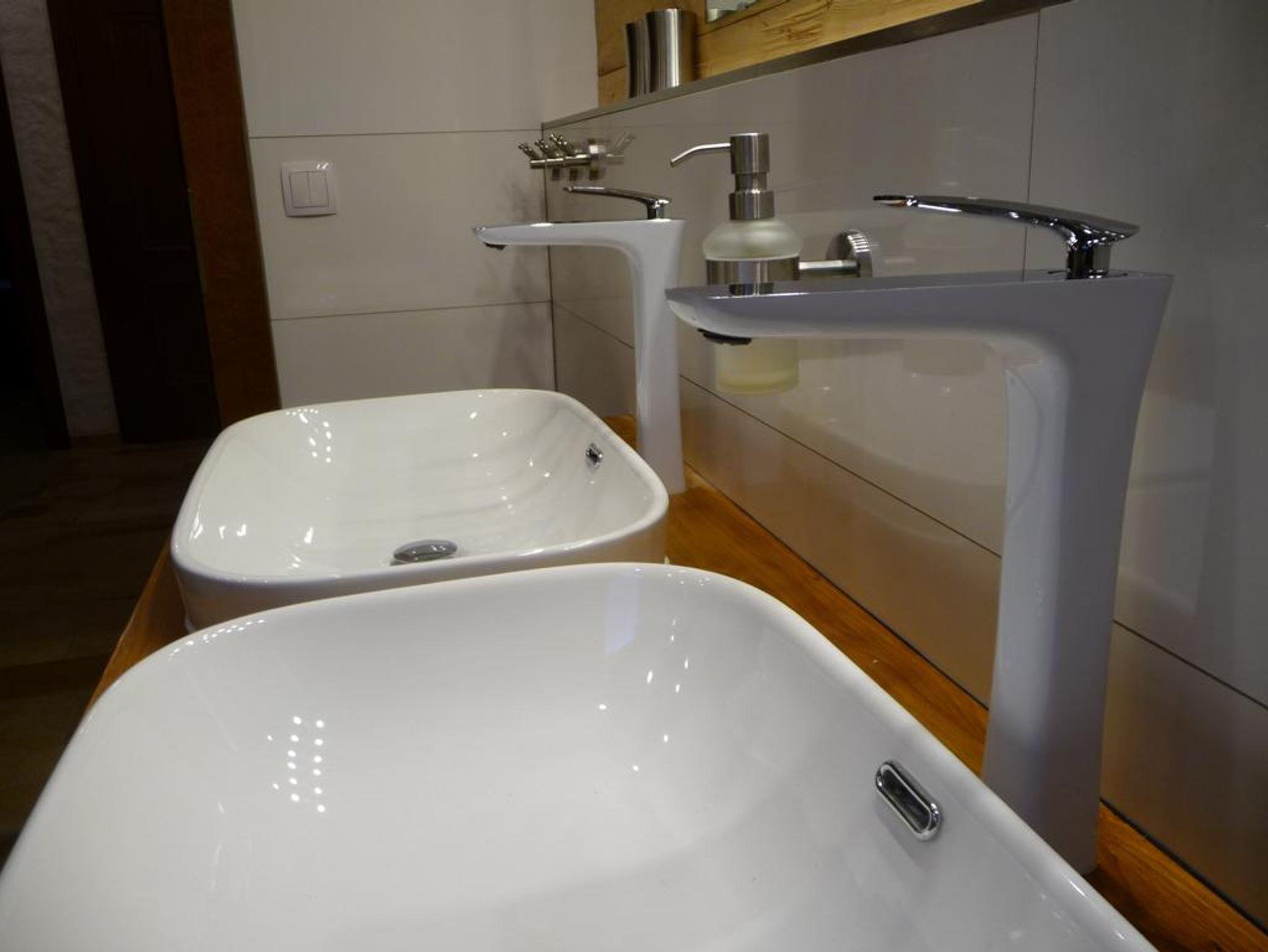 2 neue Badezimmer, jeweils mit WC, Waschbecken/Doppelwaschbecken und Dusche.