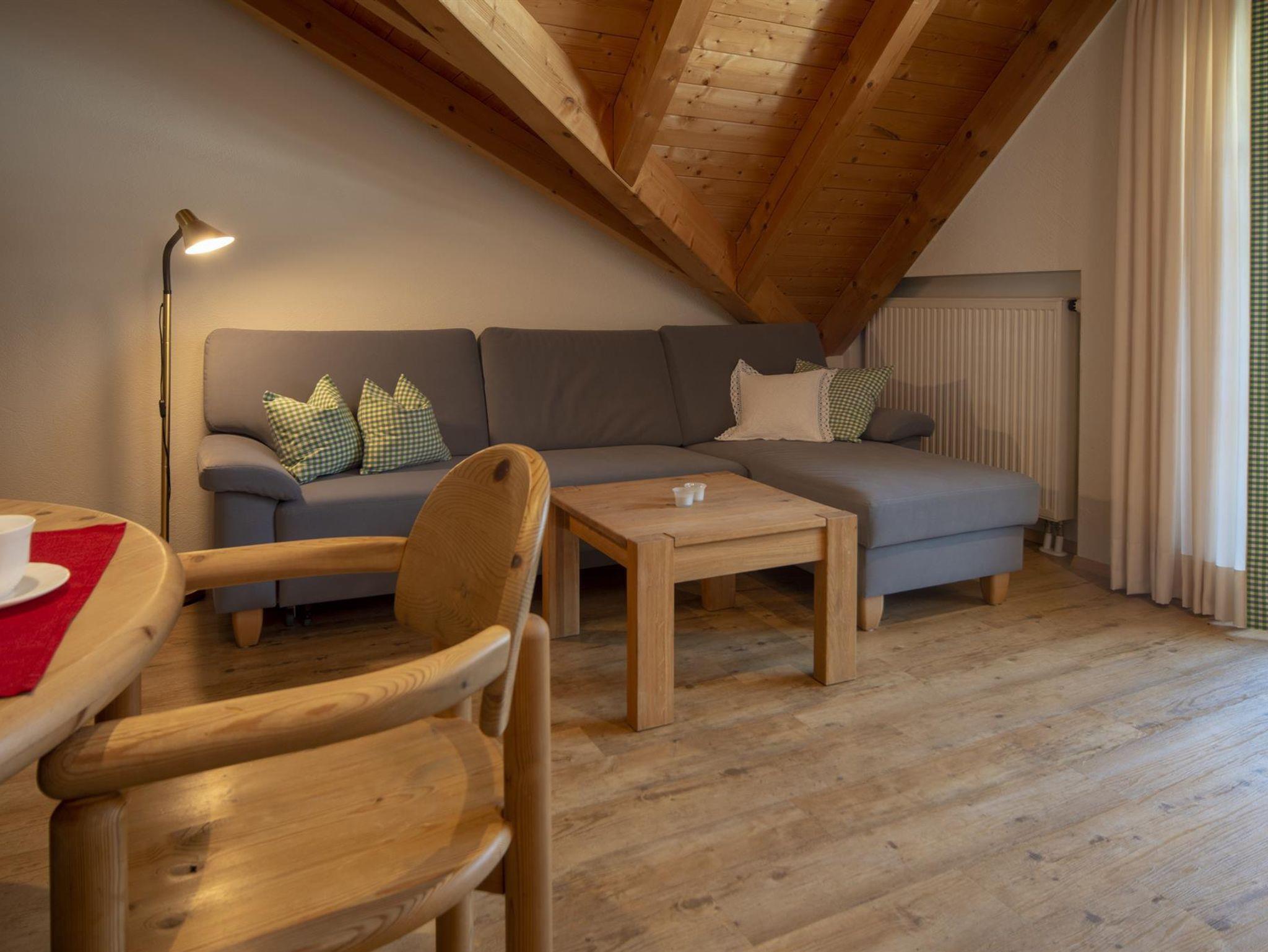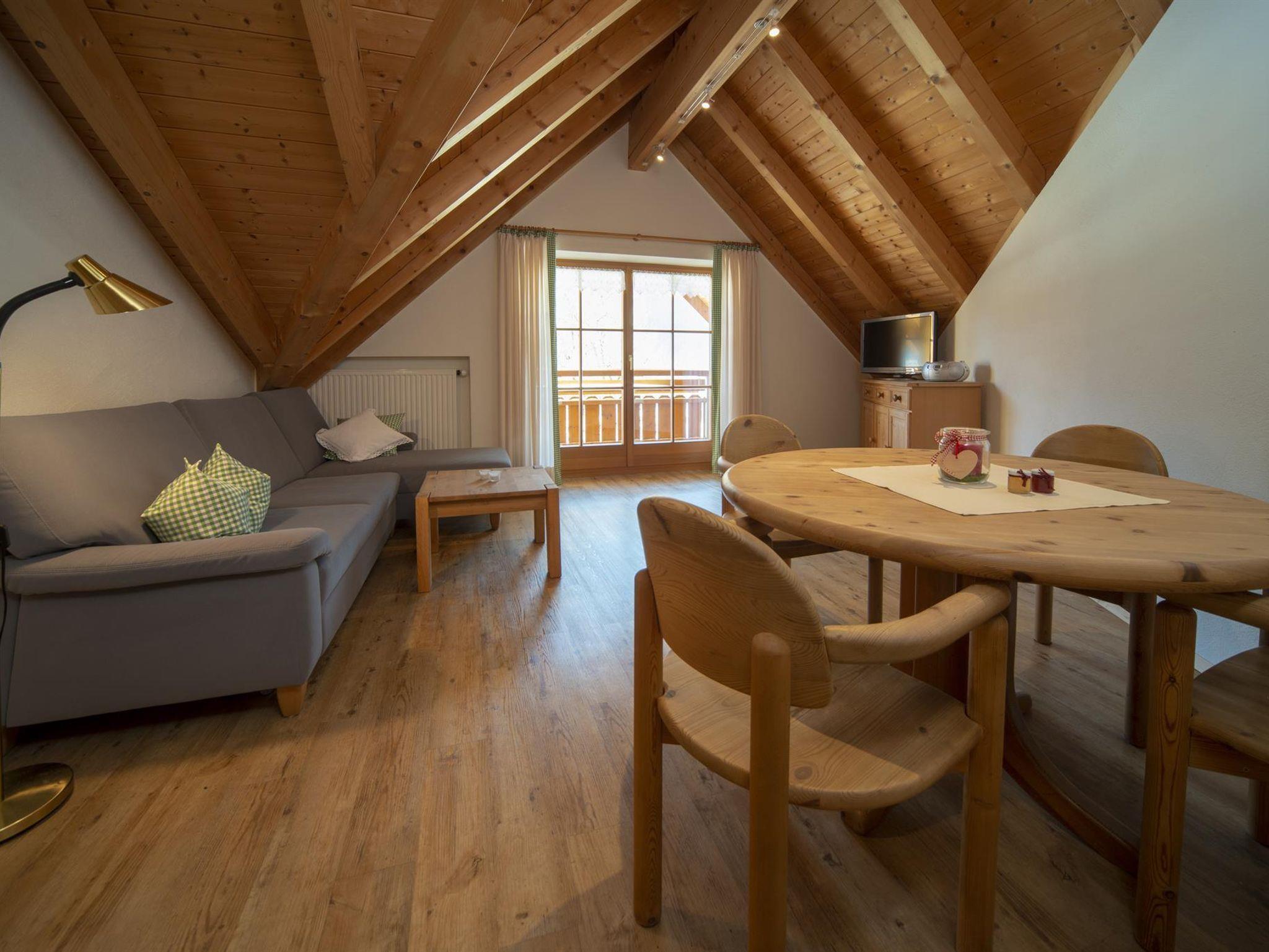 Große komfortable Ferienwohnung mit Sichtdachstuhl,Ostbalkon mit herrlichem Blick in die Berge. Gemütlicher Wohnraum mit Couchgarnitur,runder Esstisch,Flachbildschirm, Radio/CD Player und WLAN.Seperate Top ausgestattete Küche mit reichlich Ess.-und Kochgeschirr,Cerankochfeld,Backofen,Spülmaschine,Kühlschrank,Mikrowelle,Kaffeemaschine,Wasserkocher und Toaster.2 seperate Schlafzimmer. Bad mit Fenster, Dusche/WC und Waschbecken. Bettwäsche,Dusch.-Hand.-und Küchentücher sind reichlich vorhanden.