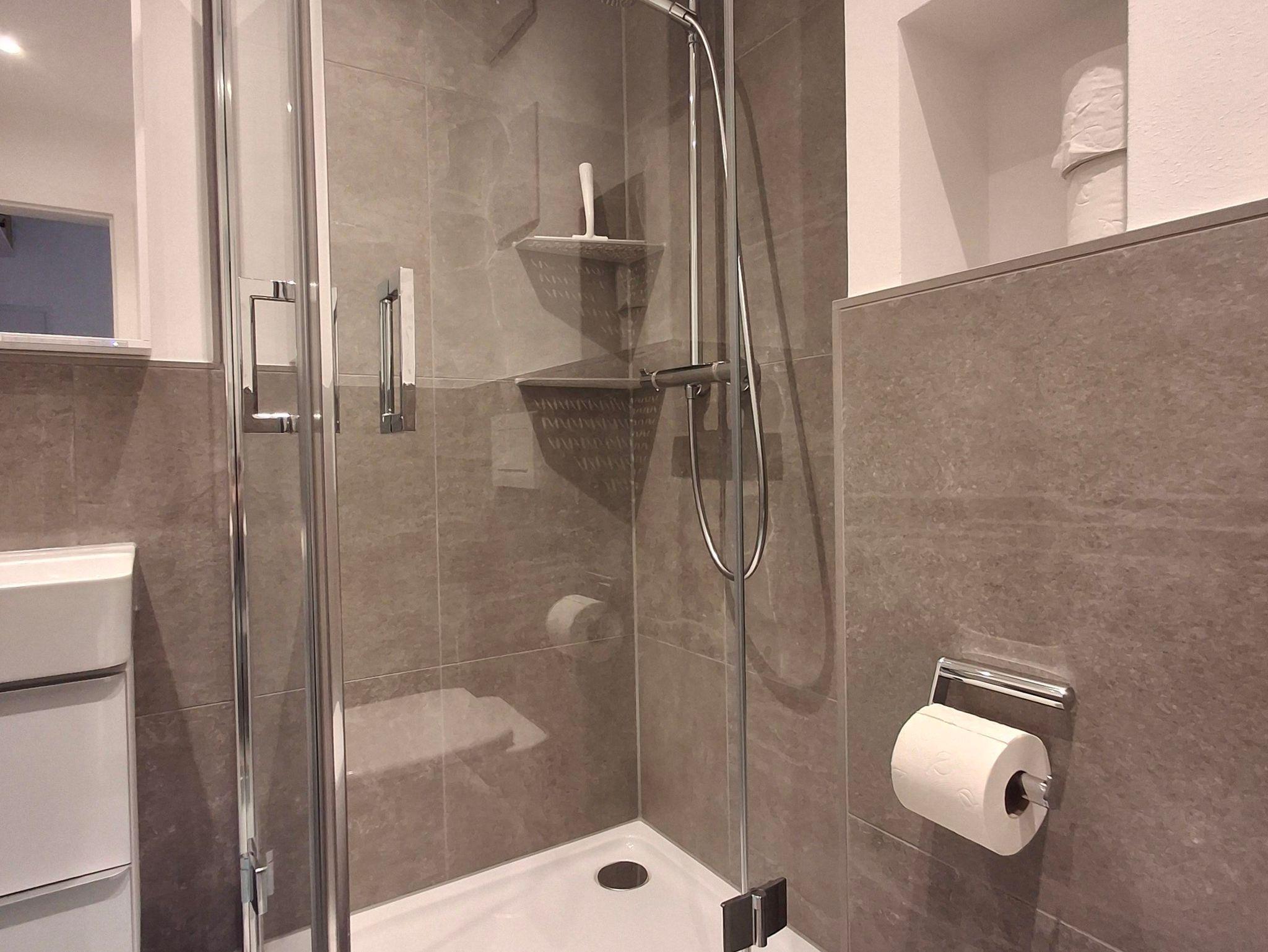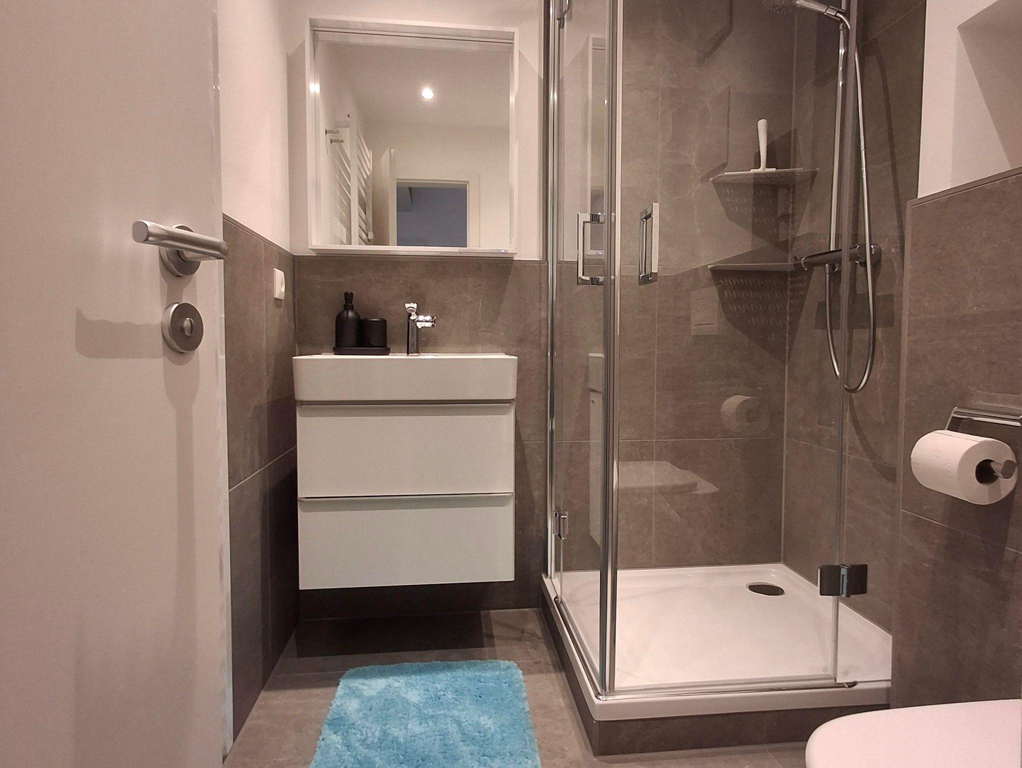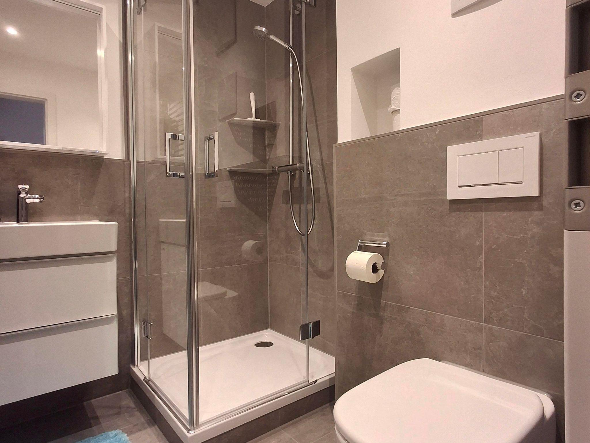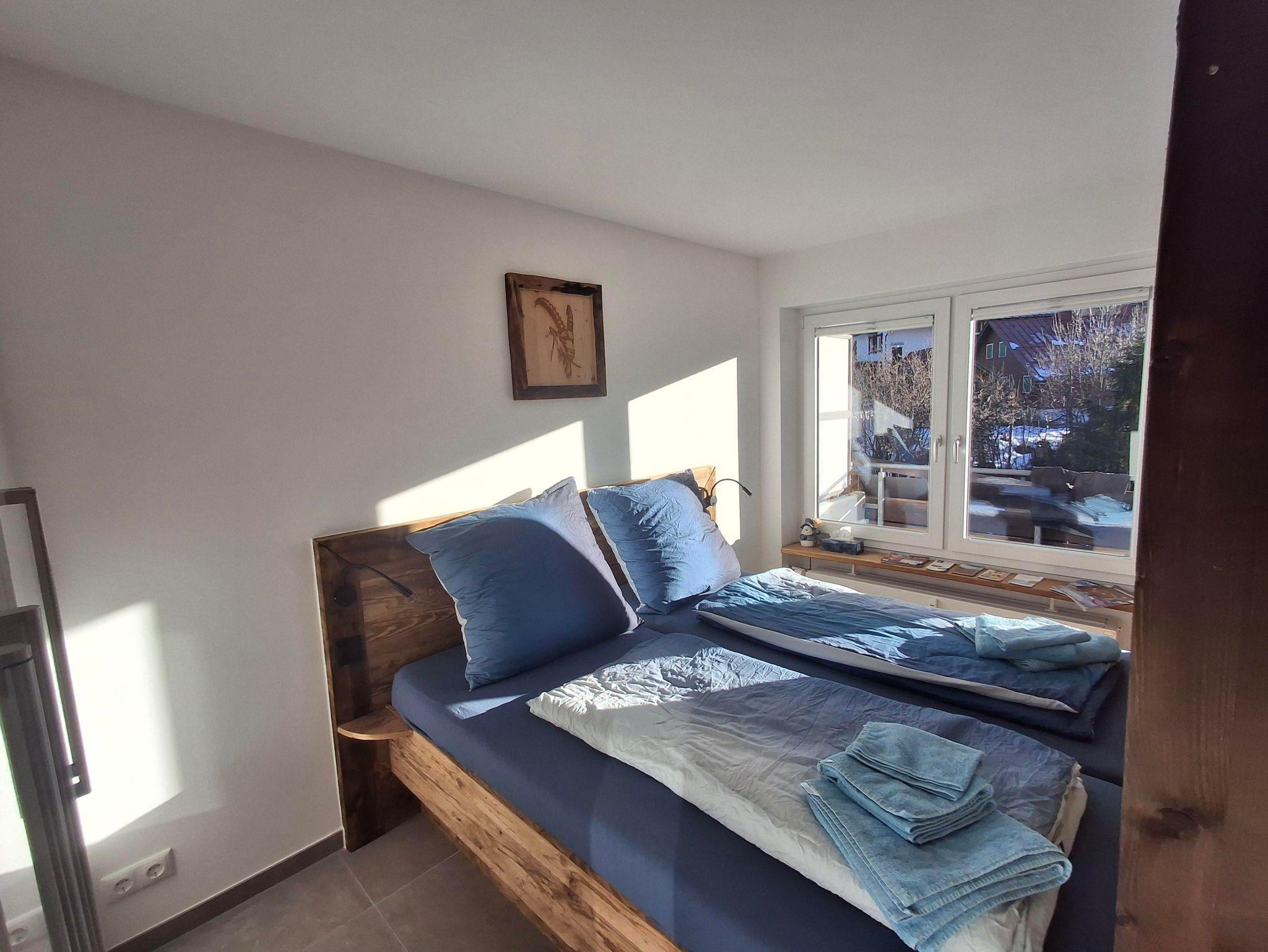 Das moderne Bad mit Dusche und der Südbalkon mit traumhaftem Blick auf den Iseler machen den Aufenthalt besonders. WLAN, TV, kostenloser Parkplatz und Ski-/Schuhkeller sind inklusive.