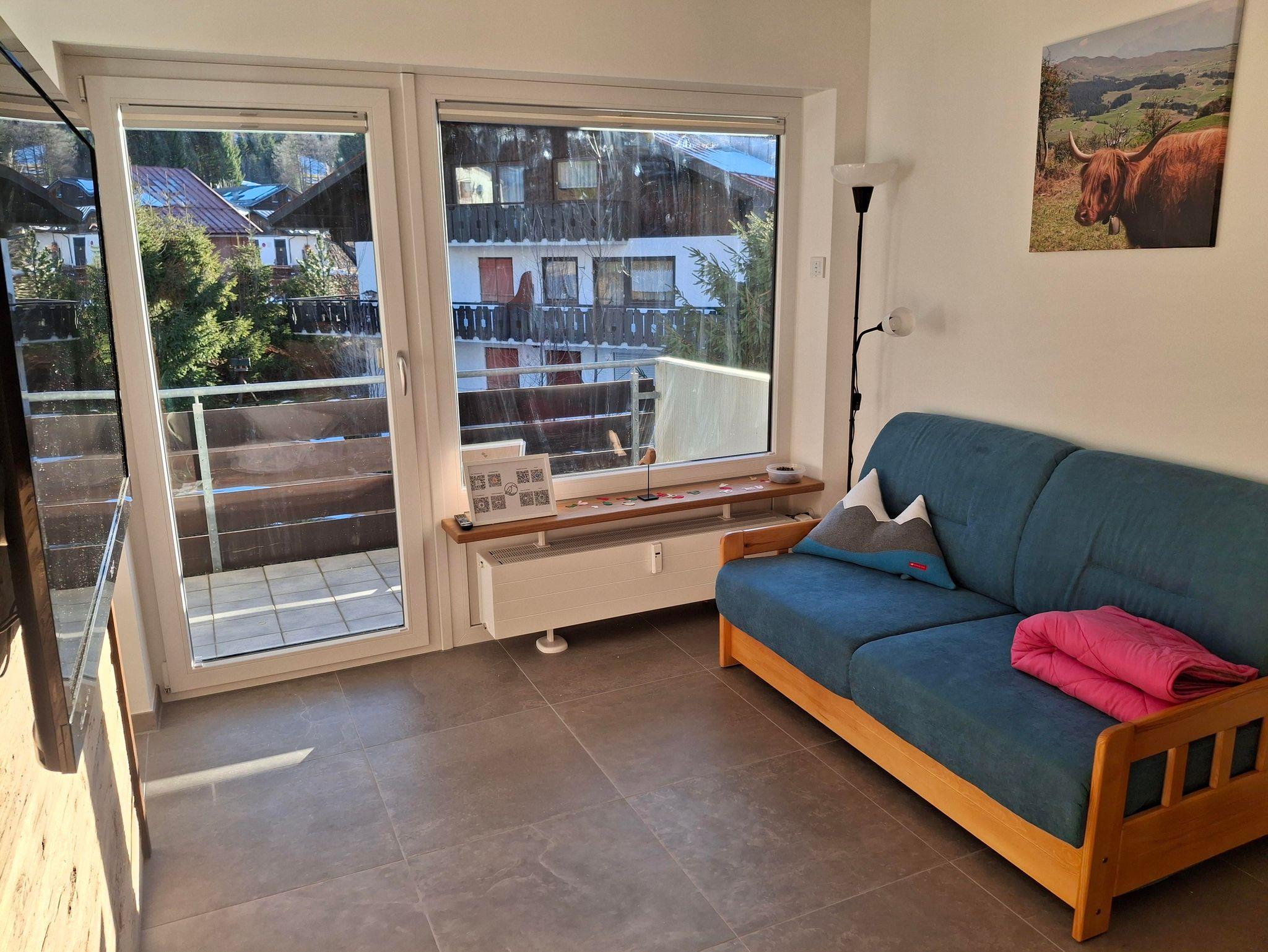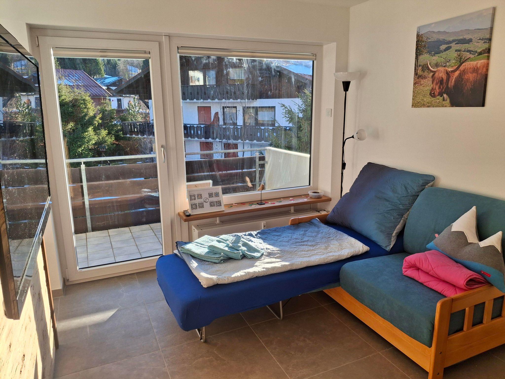 Die frisch renovierte Wohnung befindet sich im 1. Obergeschoss im Herzen von Oberjoch und vereint modernen Alpenstil mit Gemütlichkeit: ein heller Wohn- und Essbereich mit voll ausgestatteter Küche, ein komfortables Doppelbett sowie eine Schlafcouch für Kinder oder Gäste.