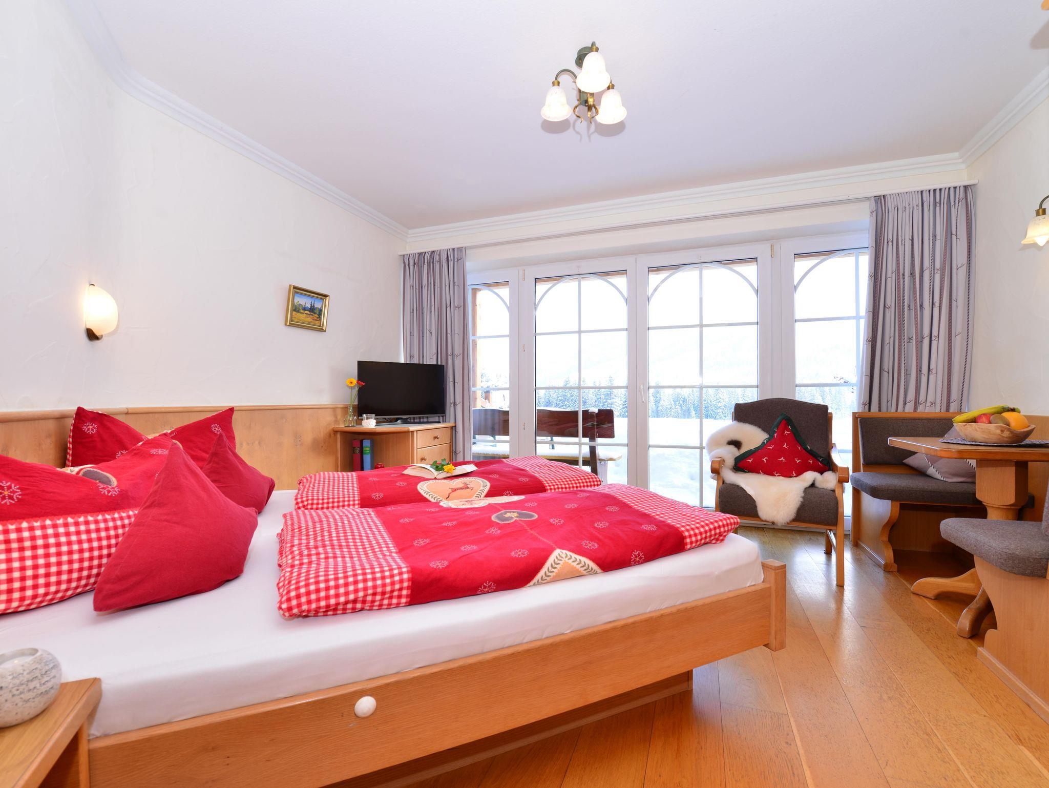 Komfortferienwohnung für 2 Personen mit Sonnenterrasse oder großem Panoramabalkon, gemütlich im bayerischen Landhausstil eingerichtet mit wunderschönem unverbautem Bergpanorama. -Traumhaftes Bergpanorama in ganztags sonniger Südlage -Mit Doppelbett und Sitzecke -Küchenzeile mit Senseo-Kaffemaschine oder auf Wunsch Filtermaschine -Bett- und Duschwäsche. -Terrasse / Balkon mit Liegestühlen -Wohliges Raumklima durch Wand- und Fußbodenheizung -Saunabereich im Haus inklusive -TV, Radio, Wlan inkl.