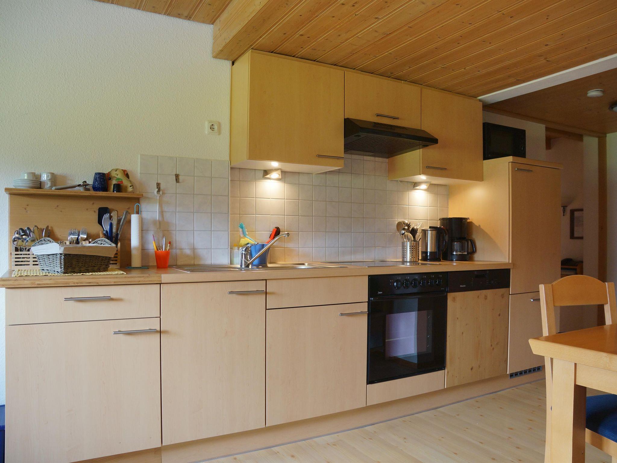 Küchenzeile mit Ceranfeld, Backofen, Mikrowelle.,Geschirrspülmasch. Kinderzimmer m. Spielgalerie zum Schlafen/Spielen. Eckbank und Couchgarnitur.