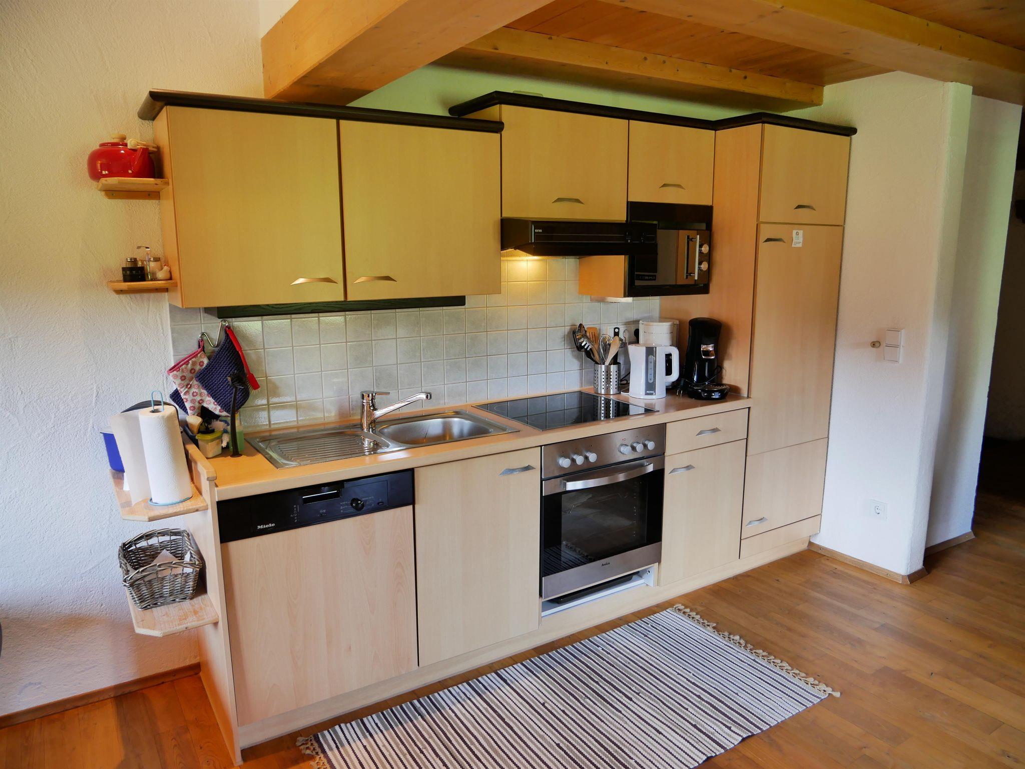 Allergiefreundliche Ferienwohnung auf der Süd-/Ostseite (auf 1060m) mit Balkon. Komplett eingerichtet, großzügiger Wohnraum mit Couchgarnitur , Eckbankgruppe und Spielecke. Hochwertiges Zirben- Schlafzimmer, Kinderzimmer mit Stockbett. Küchenzeile mit Ceranfeld, Backofen, Mikrowelle, Geschirrspüler.