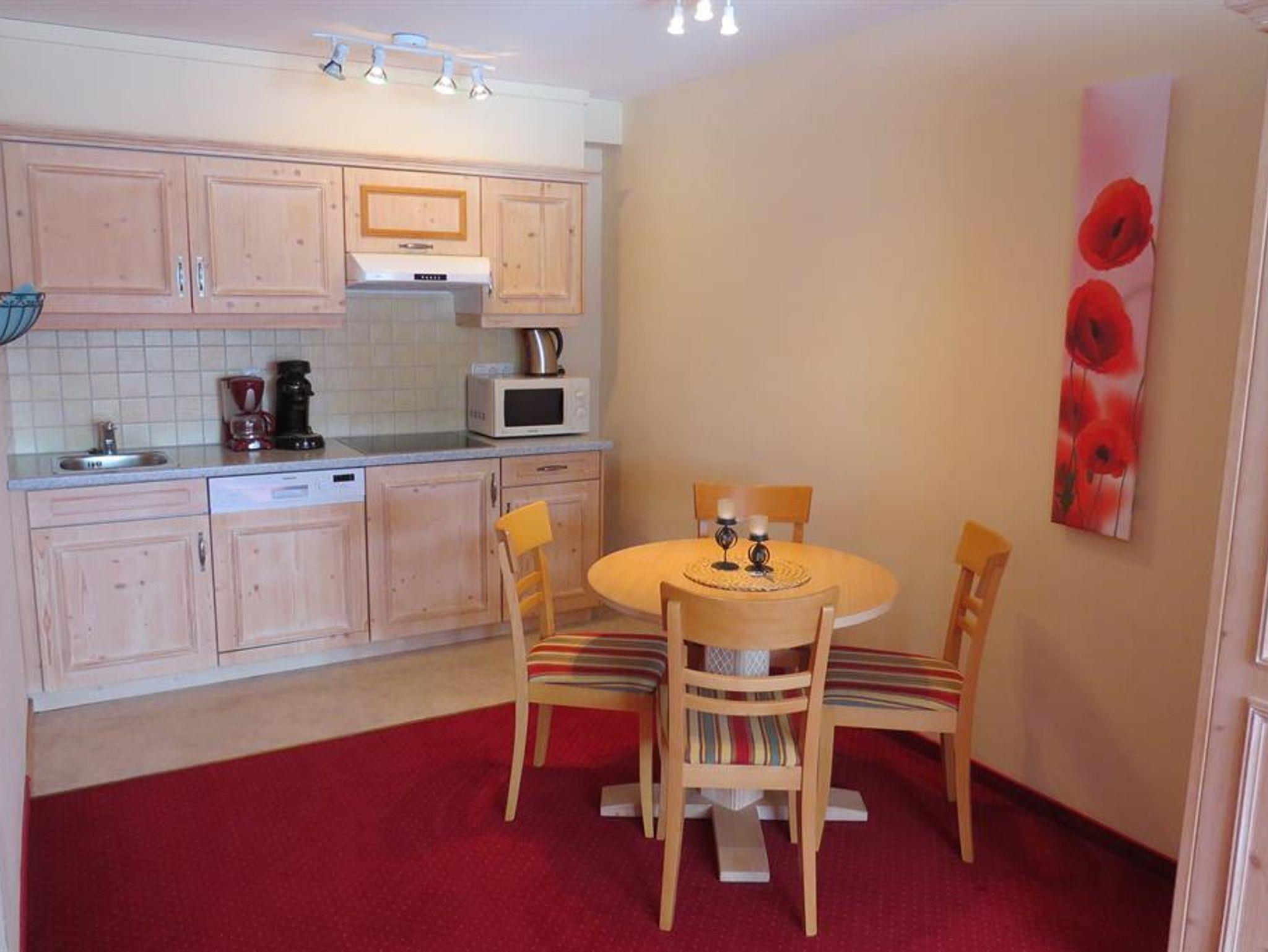 Die Wohnung verfügt über einen Südbalkon mit Gartenmöbel.Die Küche ist ausgestattet mit einem Cerankochfeld, Spülmaschine, Kaffeepadmaschine,Grillmikrowelle, Wasserkocher, Toaster und einer Kaffeemaschine.Das Bad verfügt über eine Fußbodenheizung. Bettwäsche, Handtücher,Küchenwäsche,Kinderbett, Hochstuhl, Zustellbett sind inklusiv.LCD TV mit allen Programmen,kostenloser W-Lan Empfang
