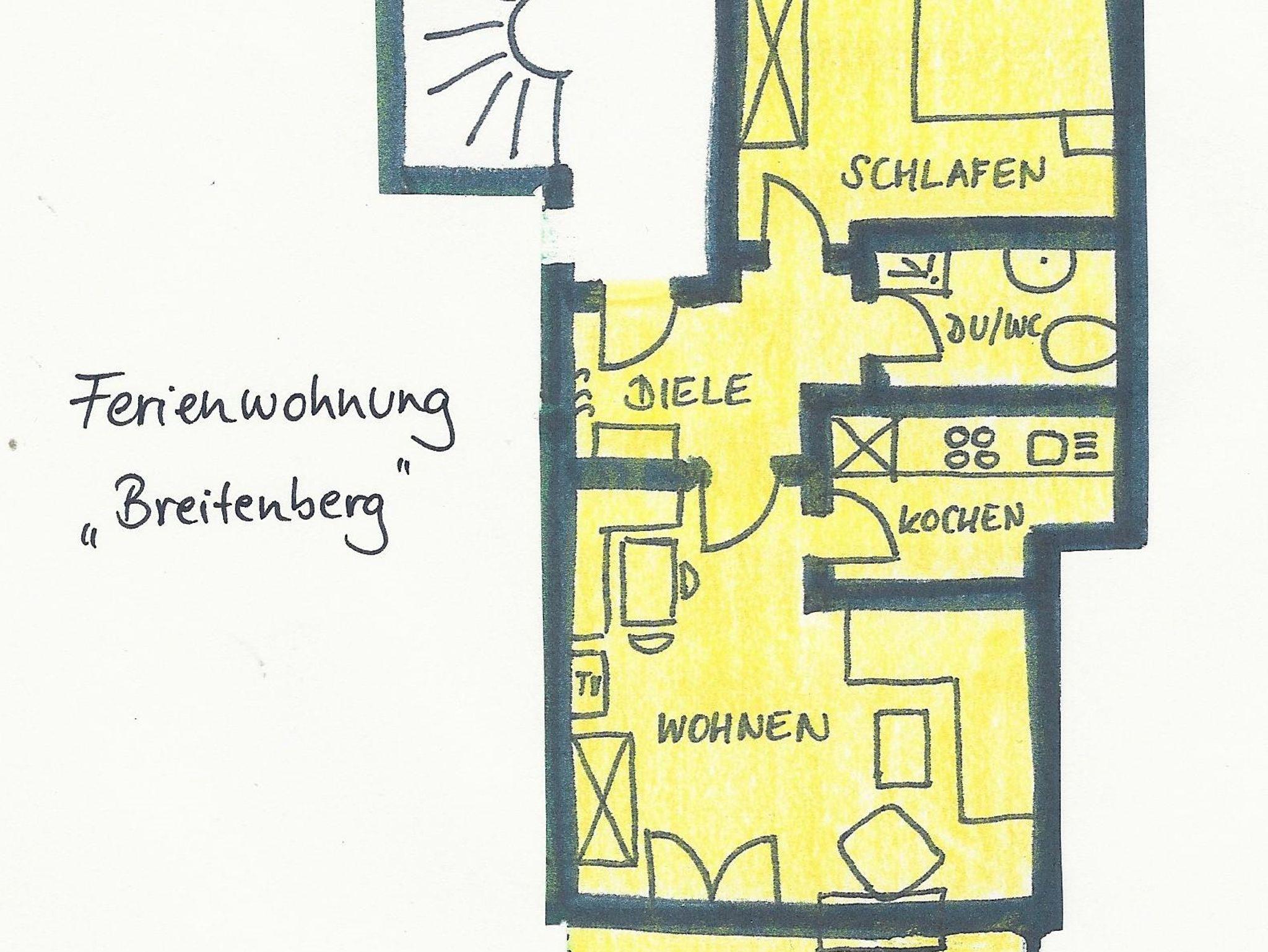 Die gemütliche Wohnung (50qm) im OG besteht aus: