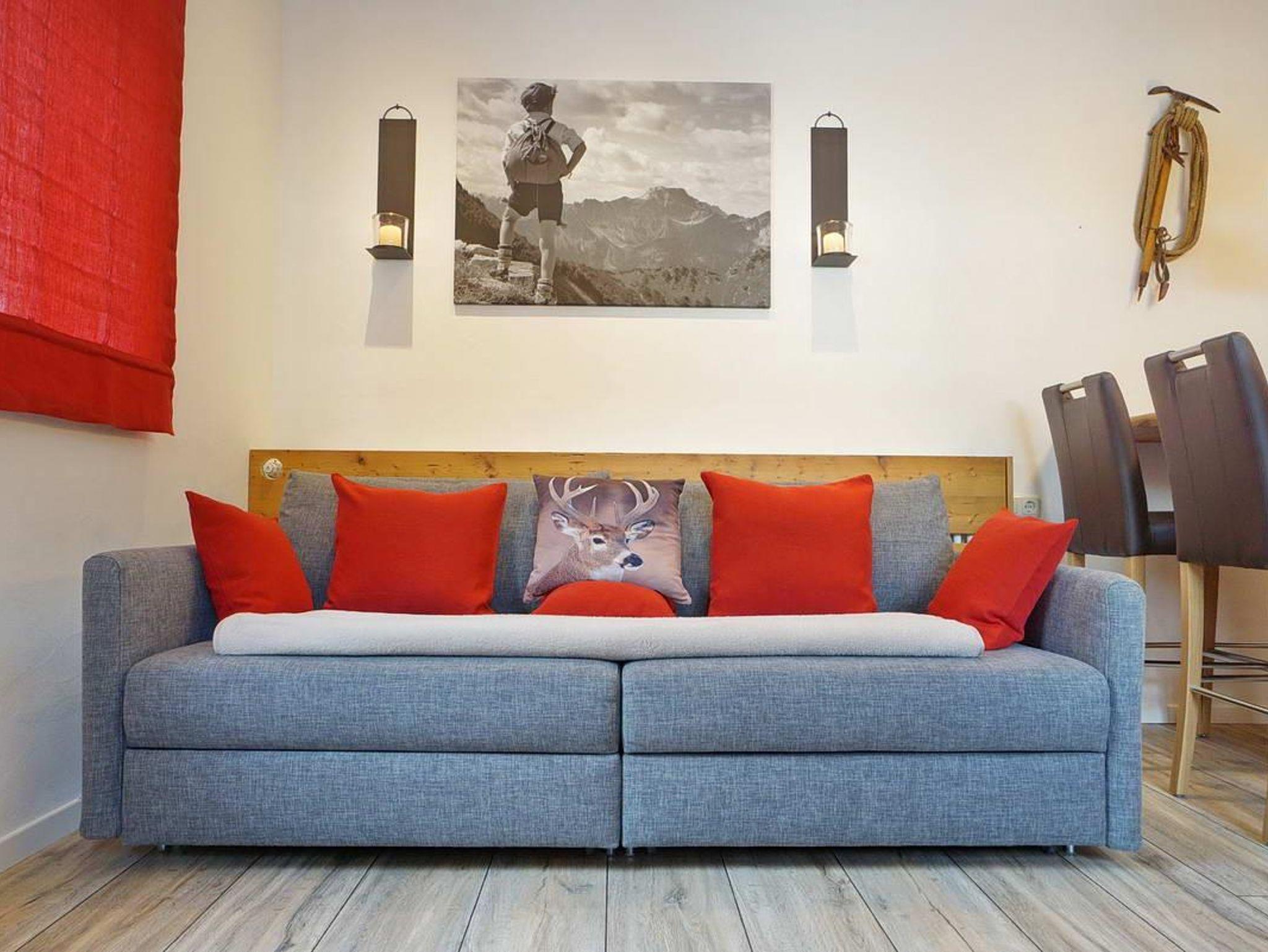 Sie finden eine Wohnküche mit hochwertiger Couch und Essplatz und ein Wohn- Schlafraum mit einem Doppel- und einem Etagenbett vor. Dusche mit Doppelwaschtisch und separates WC.