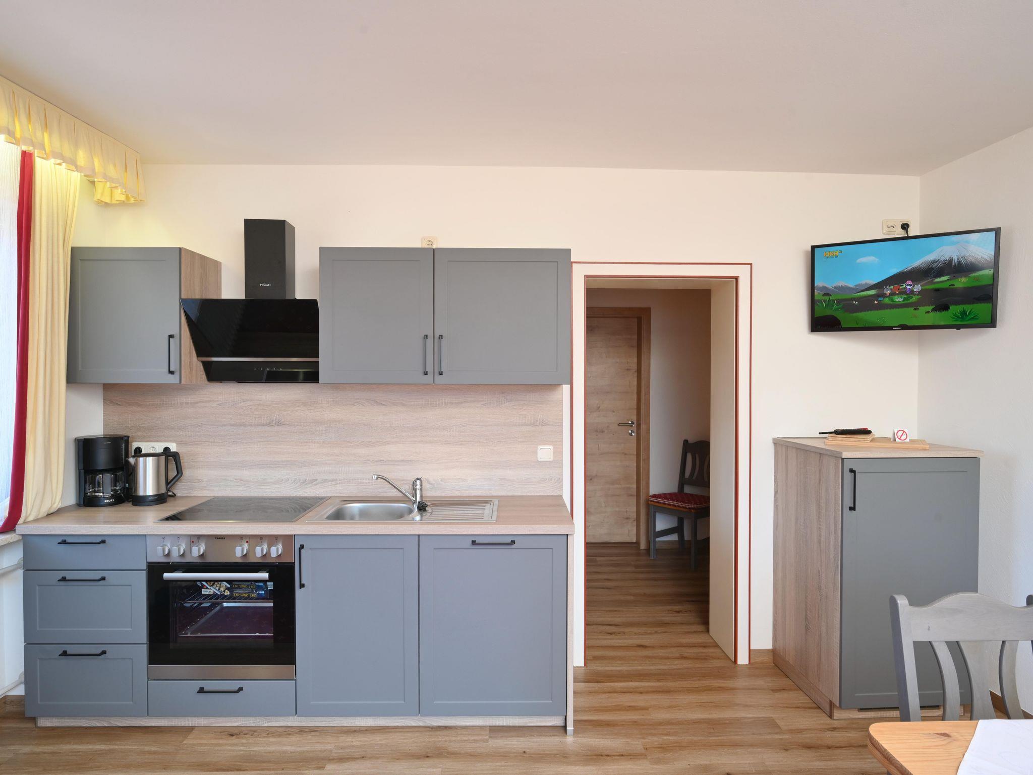 Neue, gemütliche, helle Ferienwohnung für 1-2 Personen mit sonnigem Südbalkon und Bergblick. Separates Schlafzimmer mit Boxspringbetten, komplett ausgestattete Küche im Wohnbereich (zusätzliche Schlafmöglichkeit), zwei Badezimmer jeweils mit Dusche/WC.