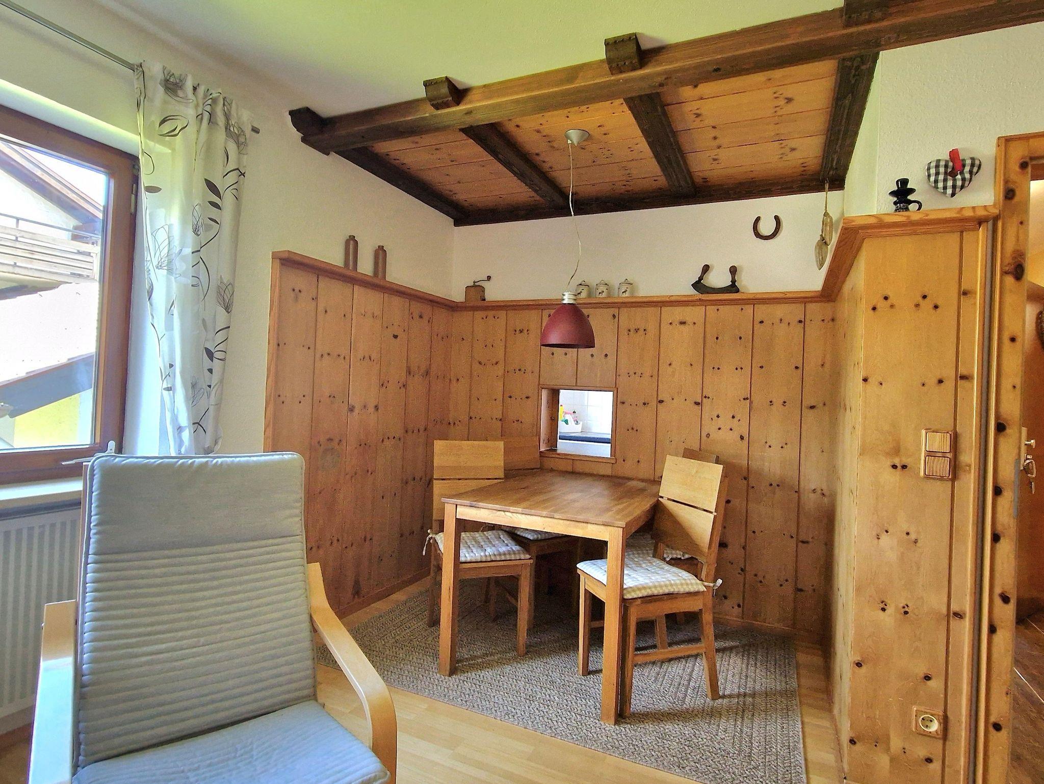 Unsere kinderfreundliche Unterkunft mit allem Komfort auf 2 Etagen, bietet Ihnen alles, was Sie für einen angenehmen Aufenthalt benötigen. In der oberen Etage das sonnige Wohnzimmer mit Essecke, der möblierte Balkon mit Bergblick, die sehr gut ausgestattete Küche mit Fenster und ein Gäste-WC. Eine, mit einer Kindersicherung versehene, Wendeltreppe führt in das Untergeschoss mit Elternschlafzimmer, kleinem Kinderzimmer mit Etagenbett, Bad mit Badewanne und WC und Abstellraum.