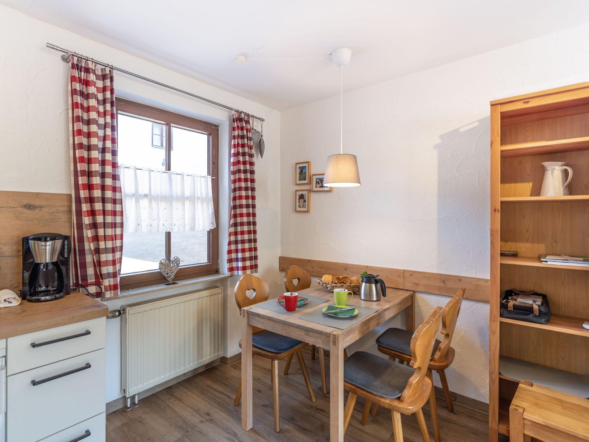 Die liebevoll eingerichtete 2-Zimmer-Ferienwohnung bietet Platz für 2 Erwachsene. Genießen Sie den gemütlichen Wohn-/Essbereich mit Terrasse und tollen Blick in die Berge, um den Tag gemütlich ausklingen zu lassen. Die im Wohnzimmer befindliche kleine Schlafcouch mit einer Liegefläche von 140 cm, bietet Platz für eine zusätzliche Person. Das separate Schlafzimmer mit Doppelbett, Kleiderschrank und Kommode bietet genügend Stauraum für Ihre Urlaubsgarderobe. Die modern eingerichtete Küchennische und das Bad mit begehbarer Dusche werden Sie begeistern.