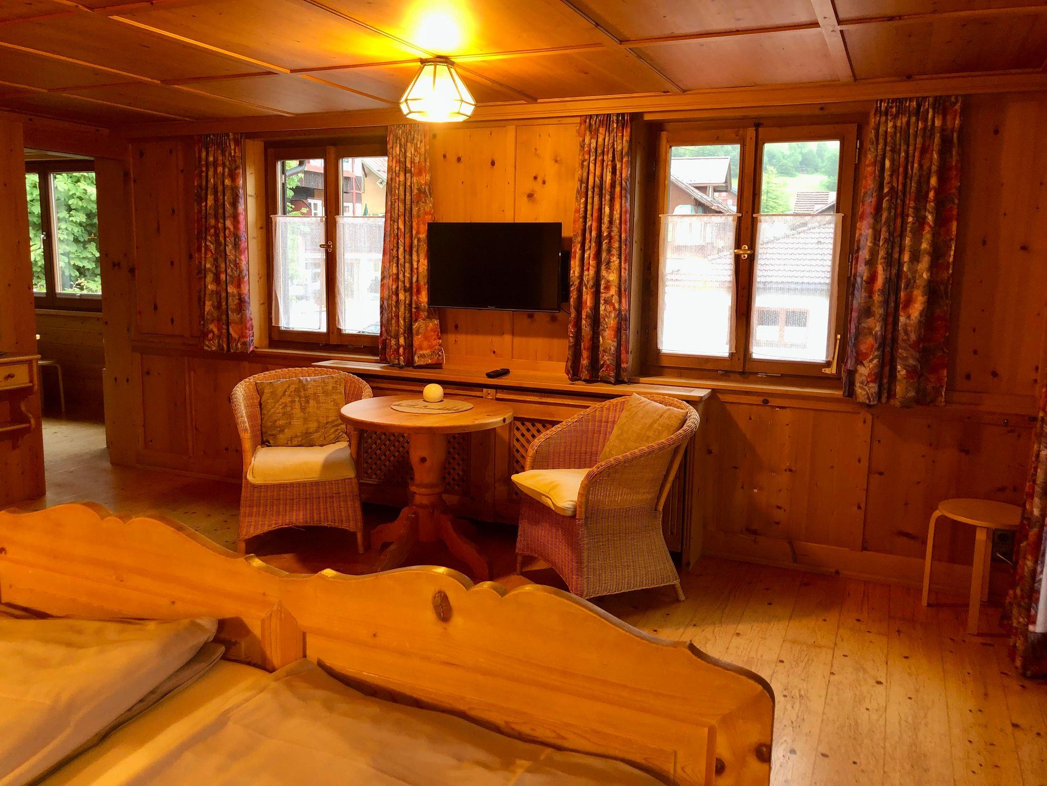 Sich im Urlaub wohlfühlen! Gemütliche, teilrenovierte Ferienwohnung für 2 bis 6 Pers. mit 3 Schlafräumen und 2 Bädern, moderne Wohnküche, ruhig, süd-ostseitig, SAT-TV in drei Räumen, W-Lan, großer überdachter Balkon, Wäsche und Handtücher inkl. In der Nähe: Bus-Haltestelle (gleich neben an), Kur-Kneippanlage,Einkaufsmöglichkeiten (Bäcker, Metzger, Tante Emma Laden, Blumen, Dako, Bergsport), Wanderwege, Loipen u. kl. Skilift, Hornbahn m. Bike-Park, Waldseilgarten u. Rodelbahnen, Schwimmbad,...