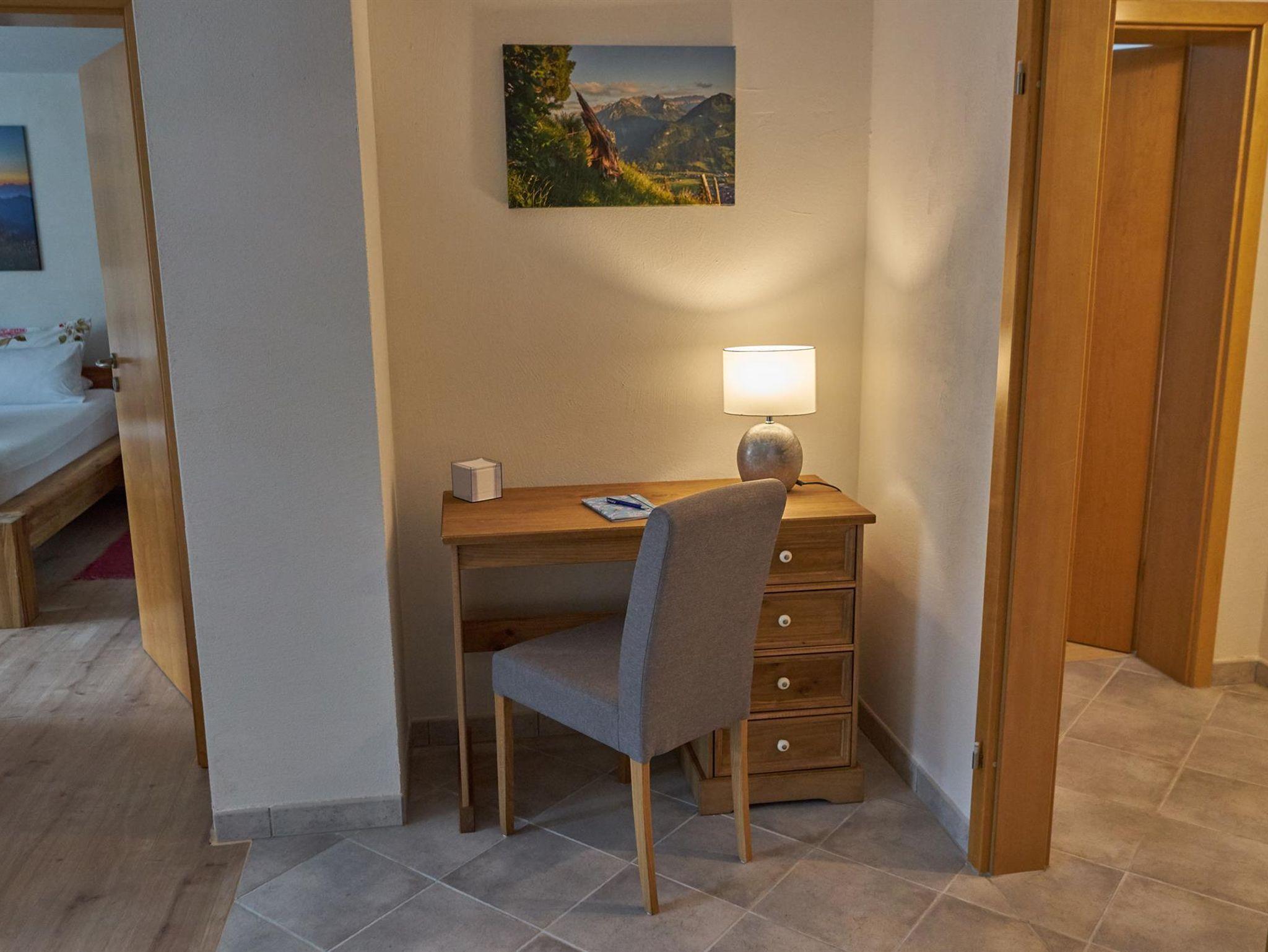 Moderner Alpenlook kombiniert mit Allgäuer Gemütlichkeit. Unsere liebevoll eingerichtete 3-Zimmer Wohnung bietet Platz für 4 Personen (68 m²). Zur Ausstattung gehören: großer Südbalkon mit Bergblick, großzügiger Wohnbereich, Schlafzimmer mit einem Boxspringbett (180cm x 200 cm), zweites Schlafzimmer mit Queensize-Bett (160cm x 200cm) Wohnküche mit exklusiver Ausstattung, im Badezimmer eine ebenerdige Wohlfühldusche mit Regenduschkopf / Handbrause, kostenfreies W-LAN, digitale Gästemappe.