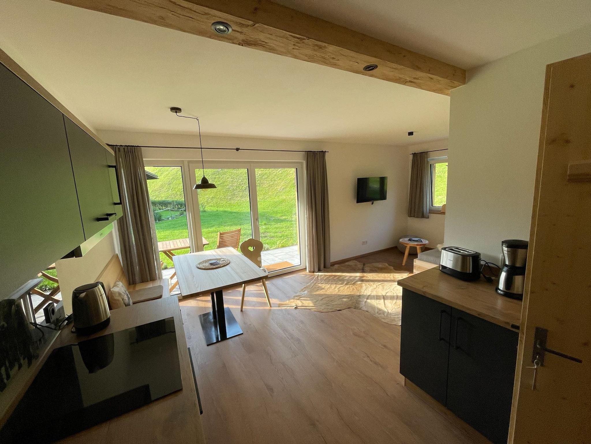 Wohnung befindet sich im Erdgschoss mit West-Terrasse mit Bergblick und ist komplett ausgestattet: