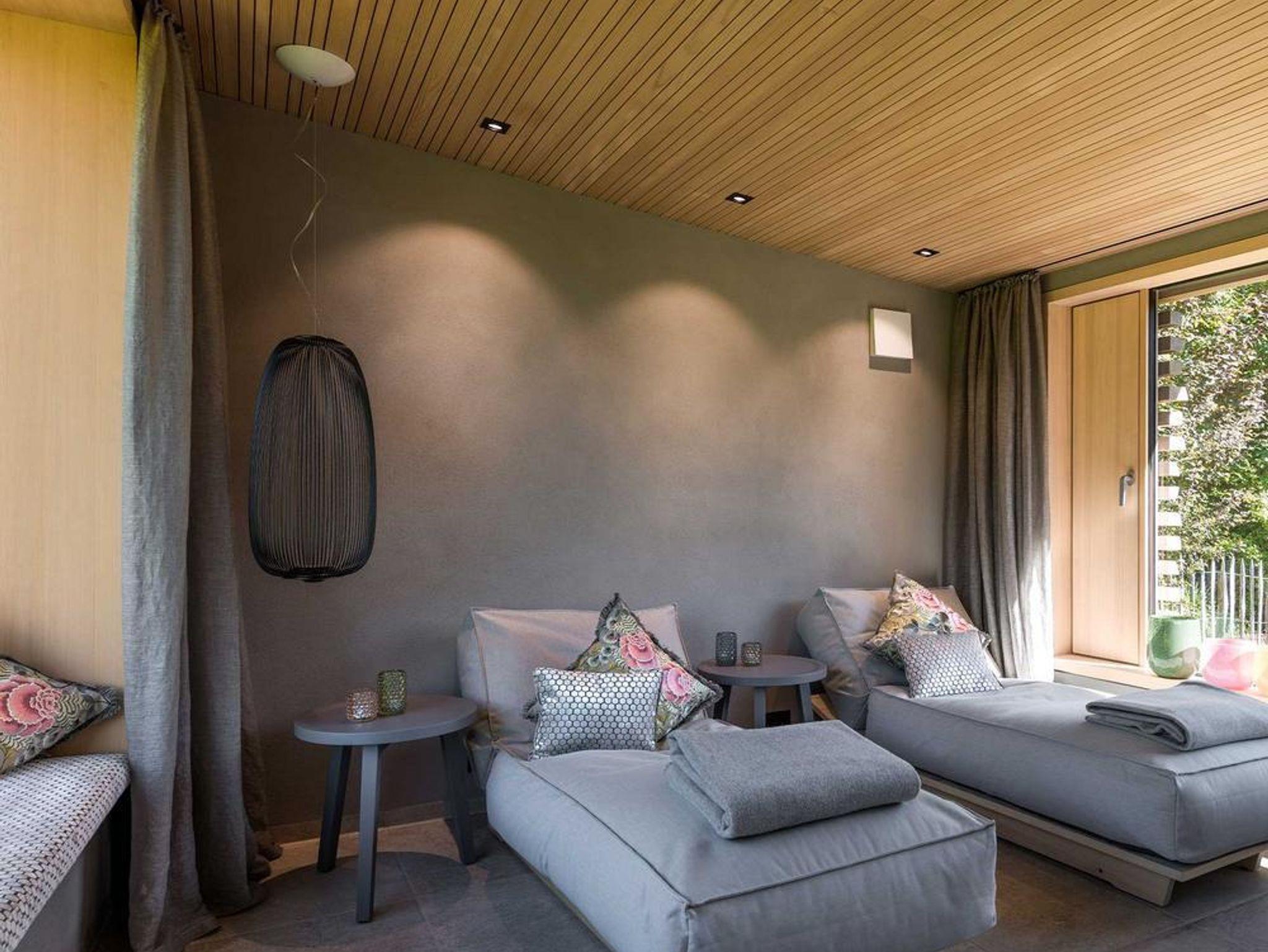 Im Garten lädt unsere neue Gartensauna mit Infrarotkabine, Panorama-Sauna und Ruheraum zur Entspannung ein – und gleich daneben schenkt der BiotopNaturwasserpool frische Leichtigkeit und Bergblick pur.