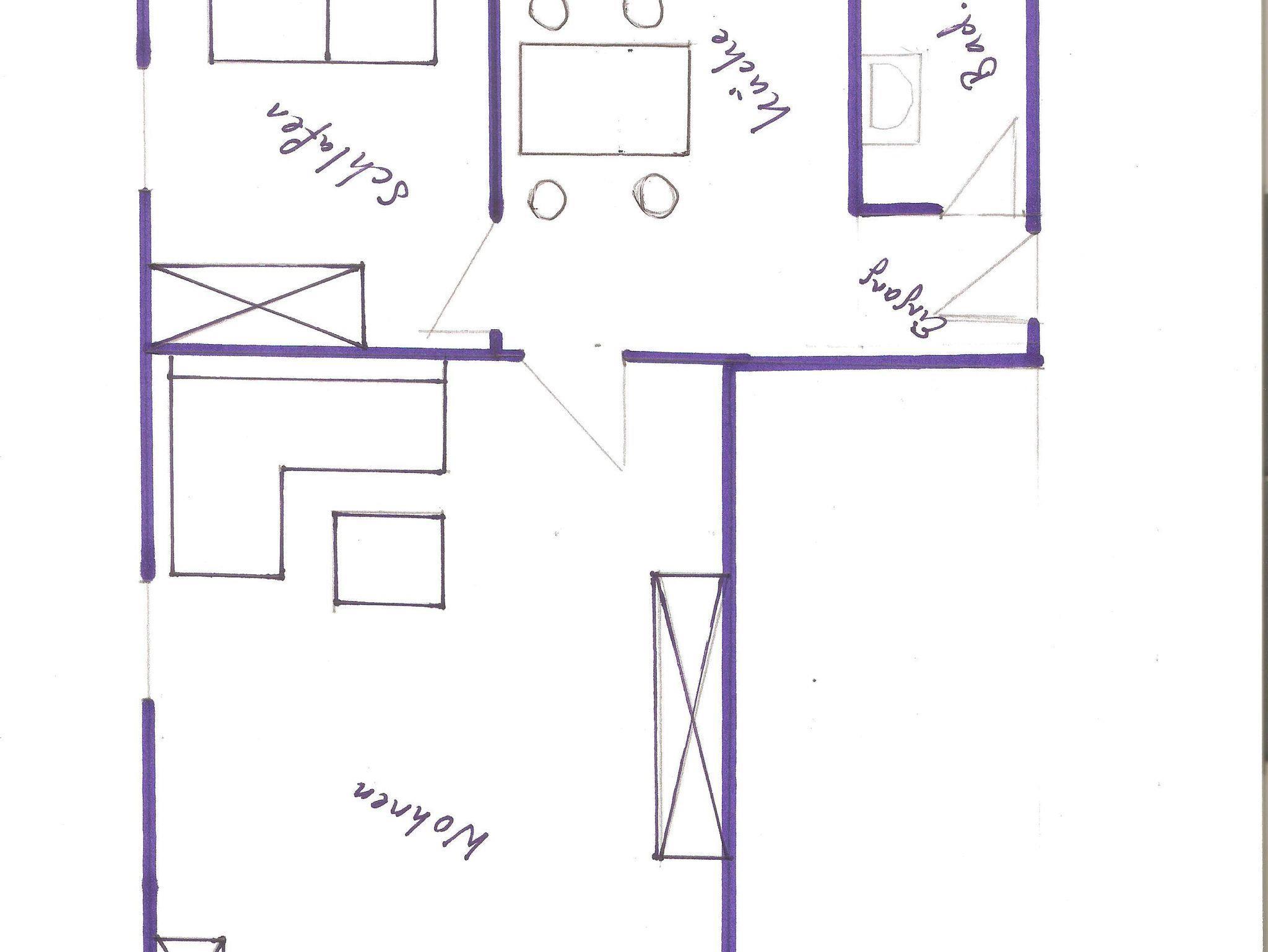 Gemütliche Küche mit 2 Plattenherd, Kombi Mikrowelle/ofen und Essecke, Dusche und WC und Südbalkon.WLAN Kostenlos.