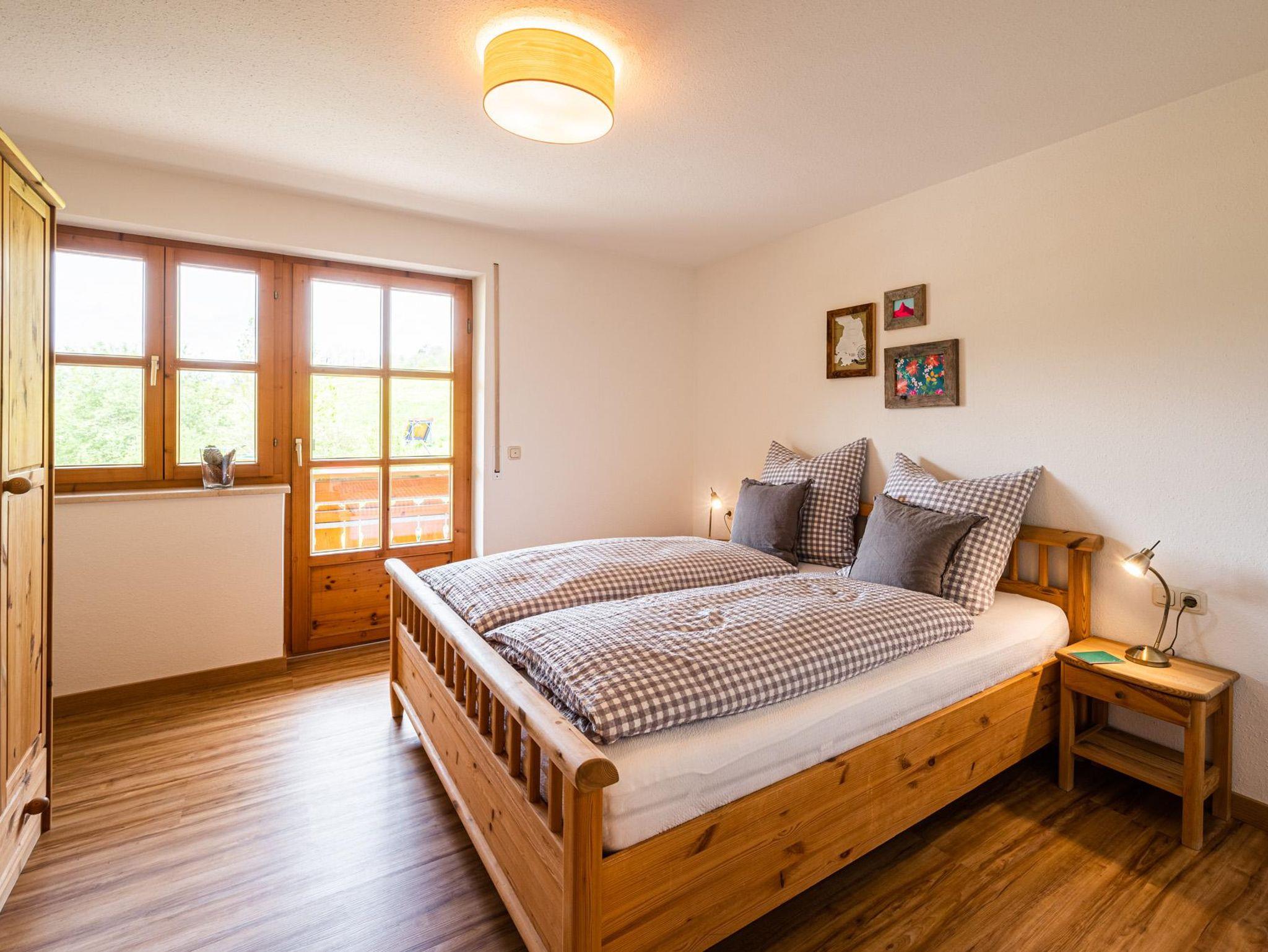Ach ja, zu Fuß sind es ins Dorf drei Minuten und auf den Hirschberg 90 Minuten.