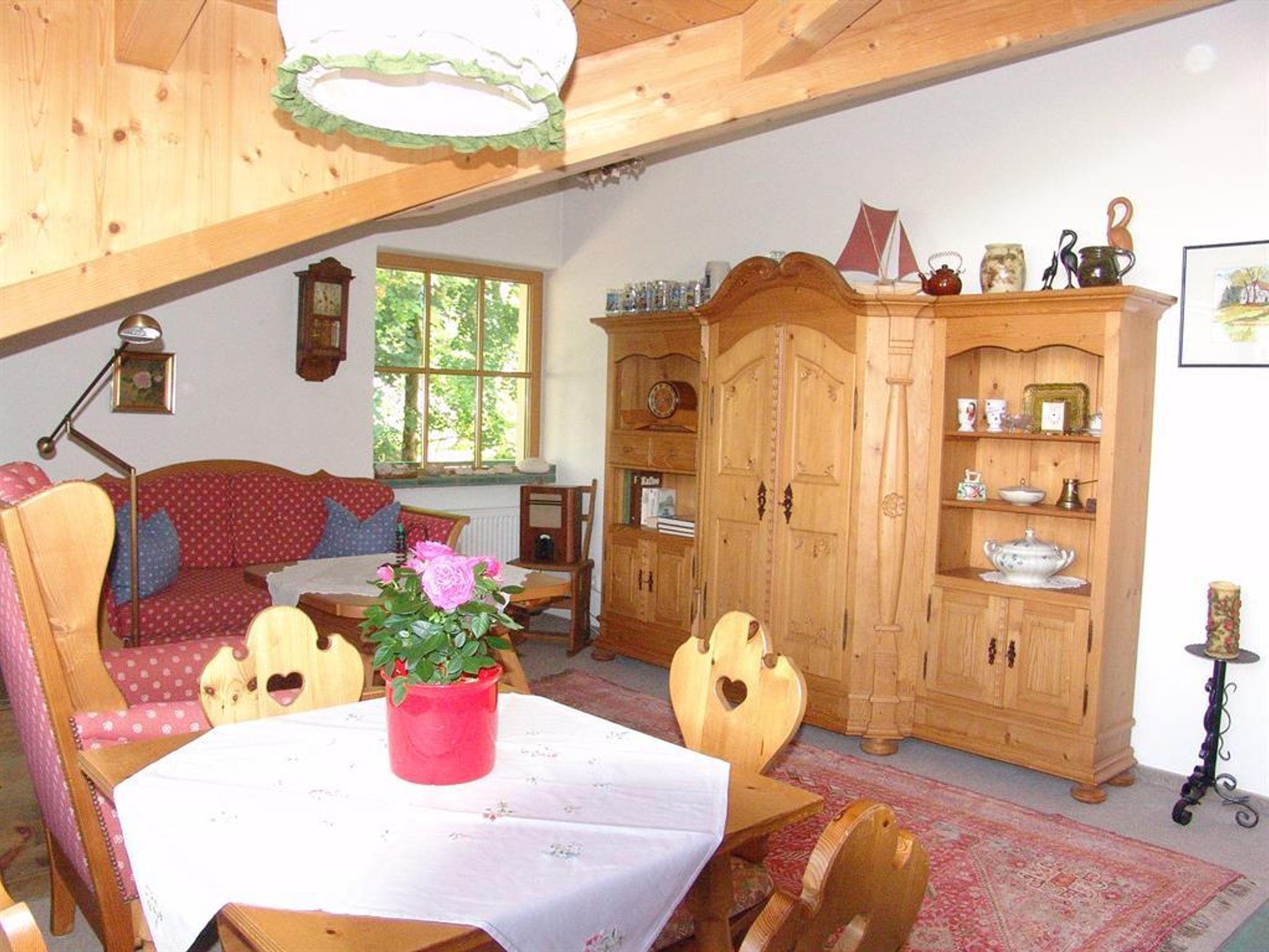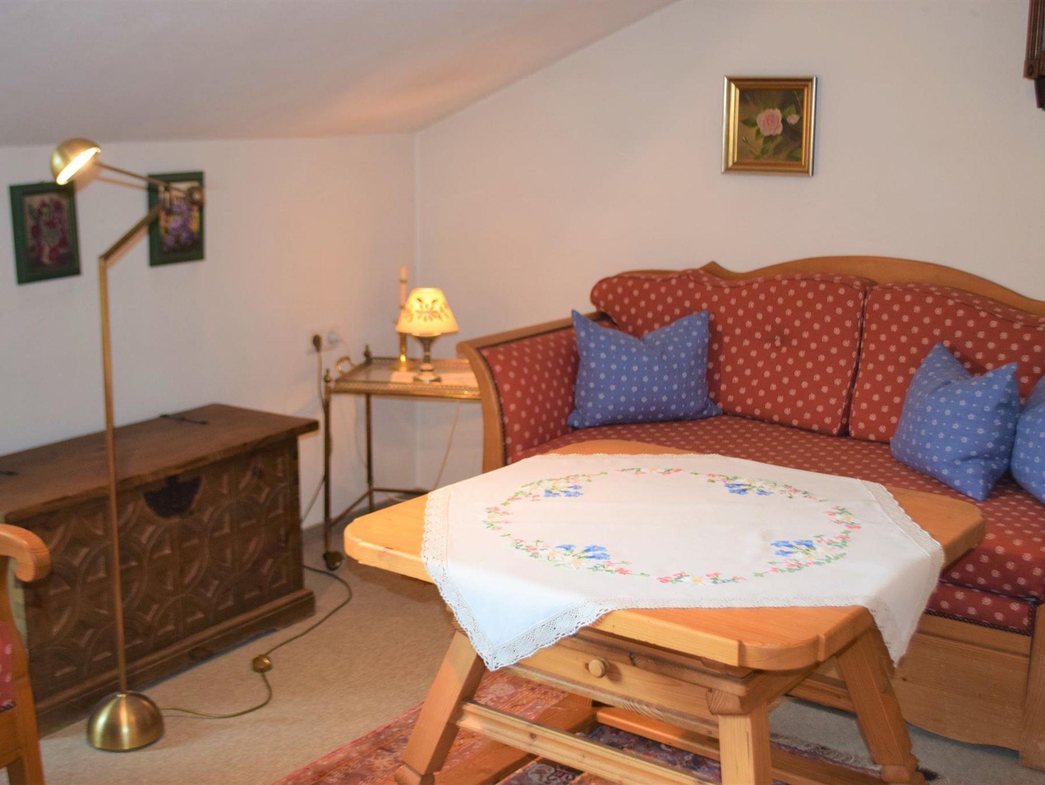 Auf einer Ebene liegen 2 Wohnungen für je 2 Pers. Ein Zimmer für eine Person mit extra Bad kann zugebucht werden zu 25€ pro Nacht. Unsere Wohnung Alpenrosenköpfle für 4 Pers. liegt Sudterrain mit eigenem Eingang und Terrasse.