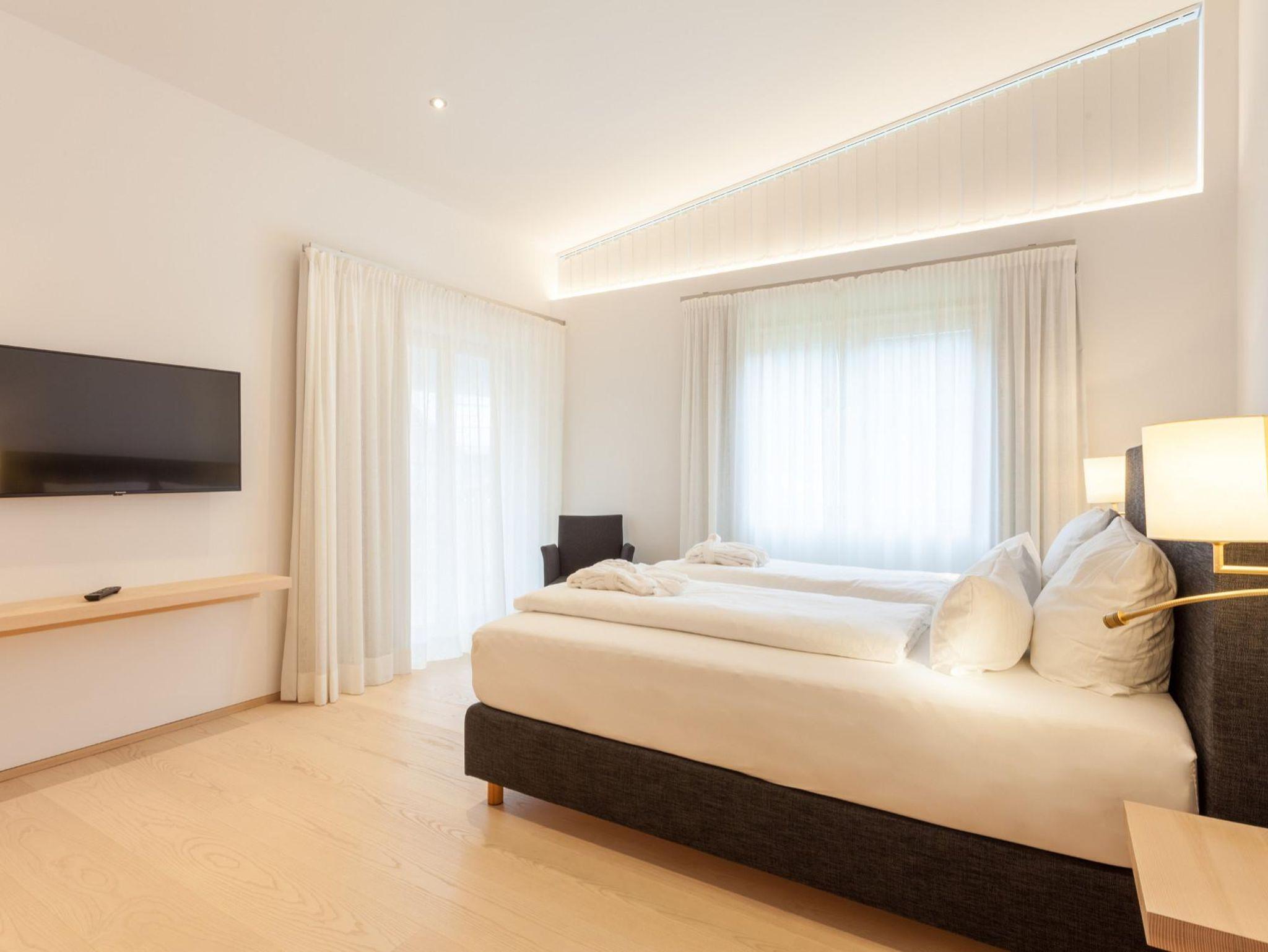 Entschleunigen Sie in unserem Wellnessbereich mit Schwimmbad, Finnischer Sauna, Infrarot-Thermium, Außen-Whirlpool, gemütlichem Ruheraum, Kollagen-Solarium und Sonnenterrasse. Fühlen Sie sich in unseren 6 hochwertigen, individuell gestalteten Wohnungen wie zu Hause.
