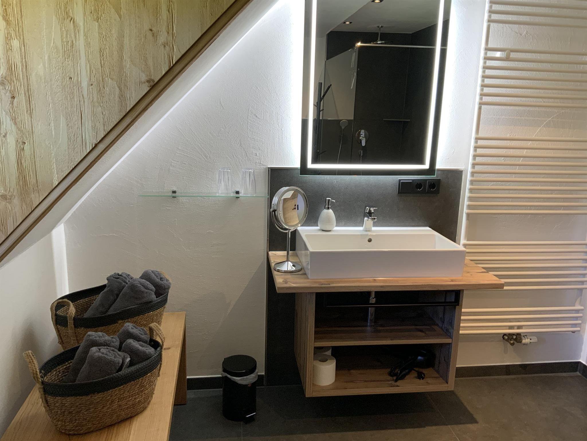 - einem Tageslichtbad mit Regendusche, Spiegel beheizt, Kosmetikspiegel, Fön, Radio mit Bluetooth