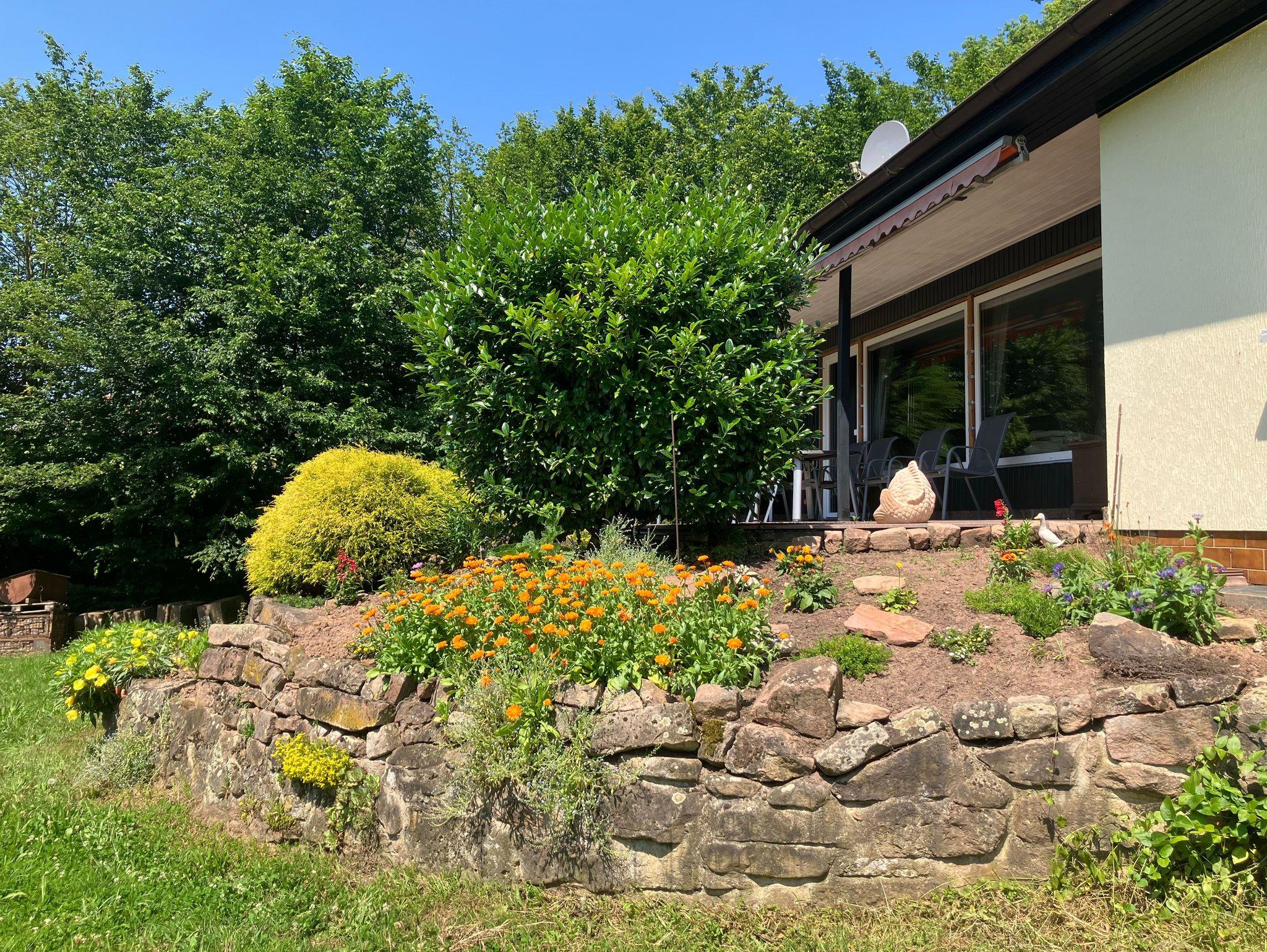 Unser Ferienhaus im Odenwald mit einer besonders schönen Lage mitten in der Natur mit großem Garten und Teichen, bietet Ihnen eine helle, natürliche Wohnatmosphäre mit einem großzügigem Grundstück. Die Wohnräume, 3 Schlafzimmer, Wohnzimmer mit Essecke, Küche, Badezimmer, Gästetoilette und die Terrasse sind ebenerdig erreichbar. Im kleinen Kräutergarten dürfen Sie sich gerne bedienen.