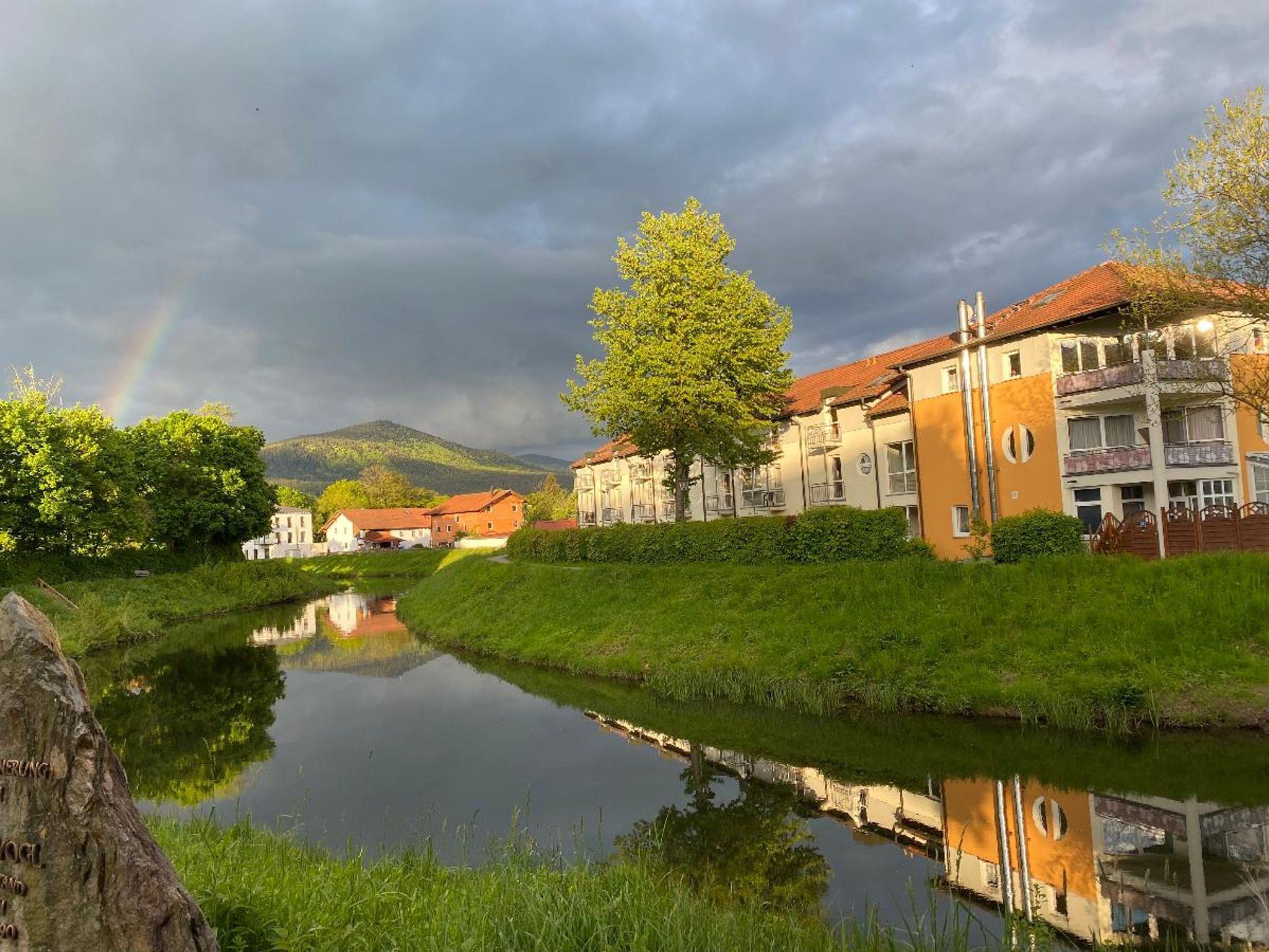 Gepflegte Appartement-Anlage, zentrumsnah und doch im Grünen, idyllisch an einer romantischen Flußbiegung gelegen. Ca. 5 Gehminuten entfernt befindet sich der Kurpark mit Motorik-Pfad, Kinderspielplatz, Minigolf und vielen Spazierwegen sowie kleinem Cafe/Restaurant. Ebenfalls in ca. 5 Gehminuten entfernt befindet sich die Brauerei Lindner mit eigener Brauerei, Biergarten und rustikaler Hausmannskost. Ca. 3 Gehminuten entfernt ist der Brauereigasthof Zur Post mit kleinem Biergarten und regionaler Küche. Das vielfältige Wander- und Radwegenetz startet direkt ab unserer Appartement-Anlage, Sie können hier direkt losstarten.