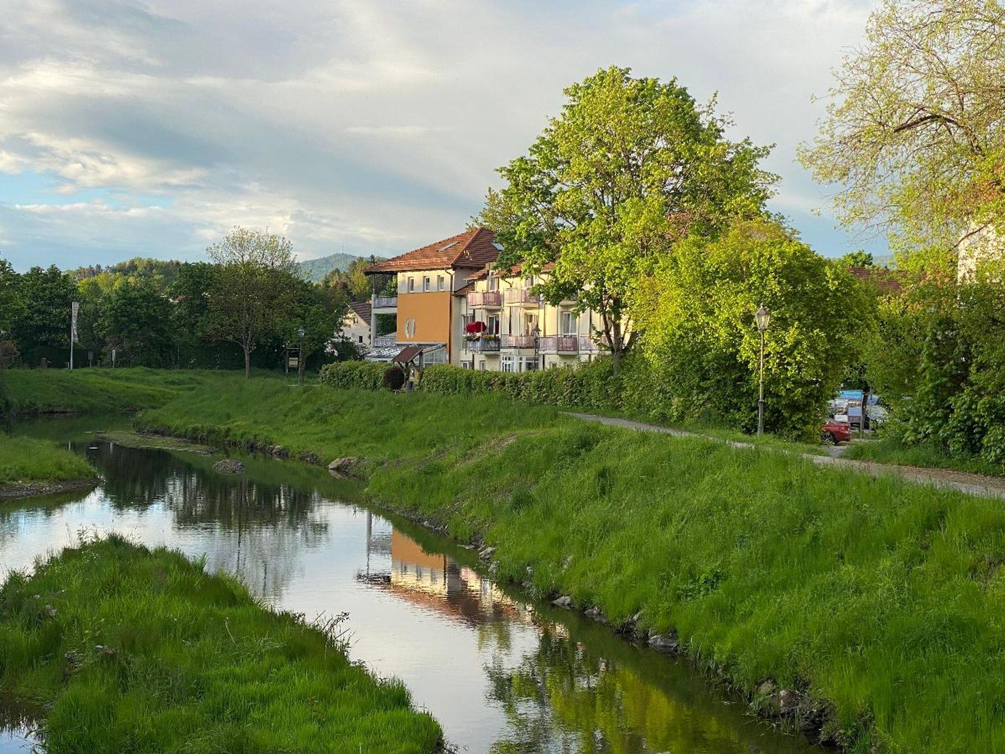 Gepflegte Appartement-Anlage, zentrumsnah und doch im Grünen, idyllisch an einer romantischen Flußbiegung gelegen. Ca. 5 Gehminuten entfernt befindet sich der Kurpark mit Motorik-Pfad, Kinderspielplatz, Minigolf und vielen Spazierwegen sowie kleinem Cafe/Restaurant. Ebenfalls in ca. 5 Gehminuten entfernt befindet sich die Brauerei Lindner mit eigener Brauerei, Biergarten und rustikaler Hausmannskost. Ca. 3 Gehminuten entfernt ist der Brauereigasthof Zur Post mit kleinem Biergarten und regionaler Küche. Das vielfältige Wander- und Radwegenetz startet direkt ab unserer Appartement-Anlage, Sie können hier direkt losstarten.