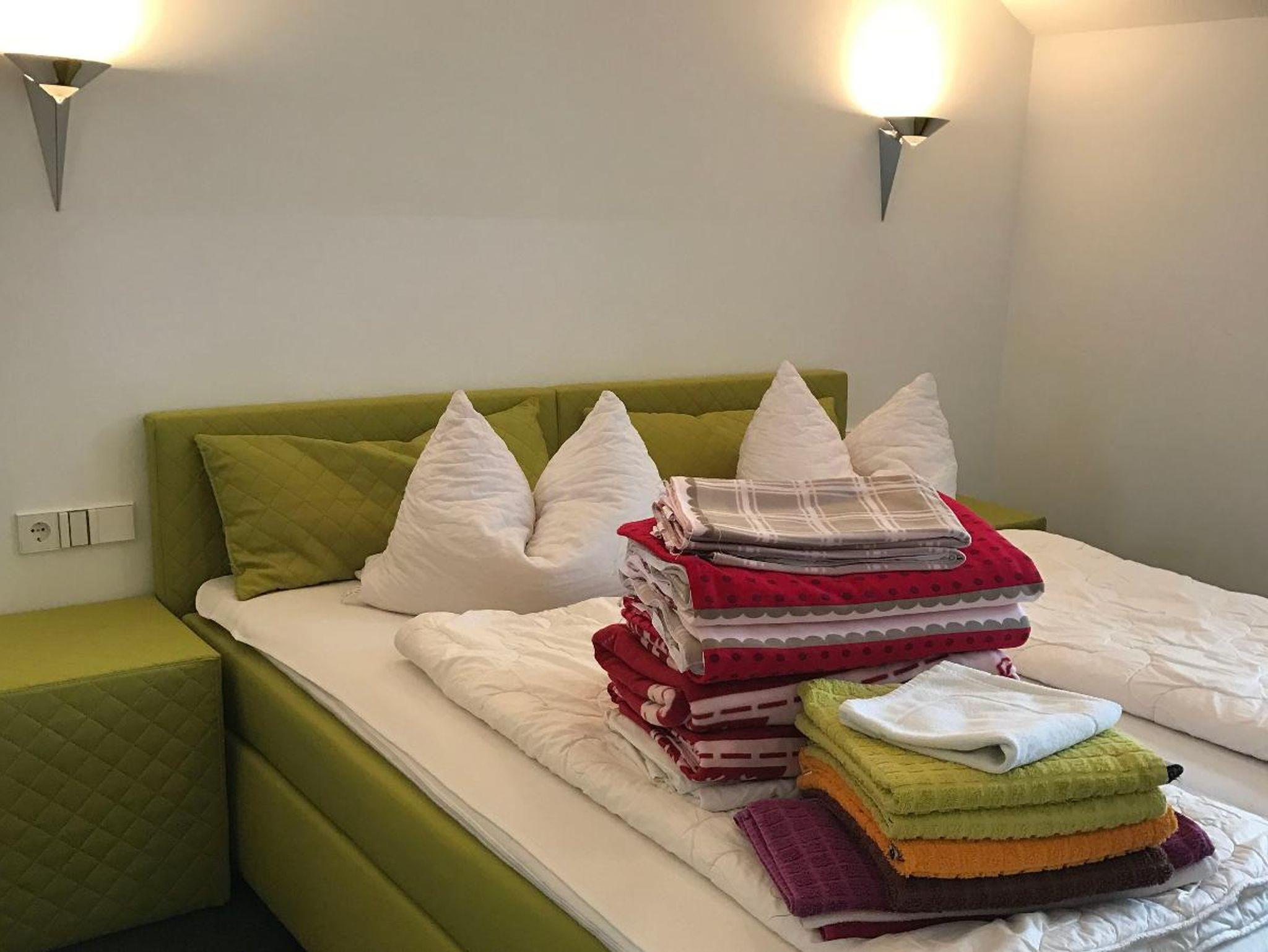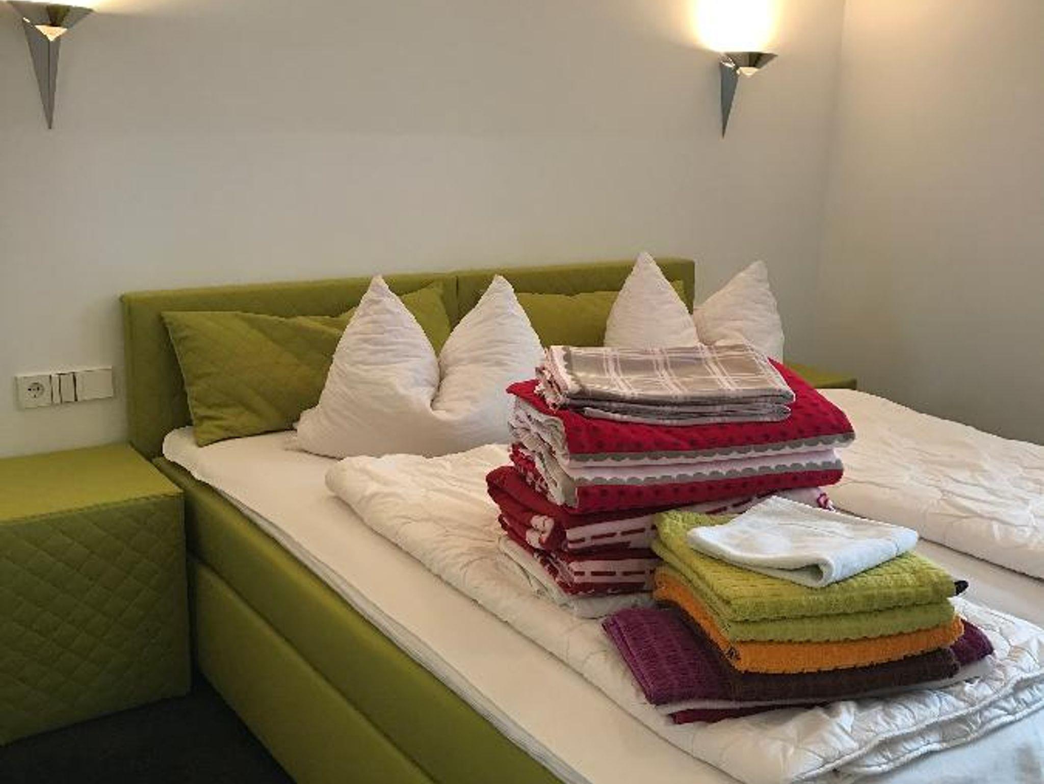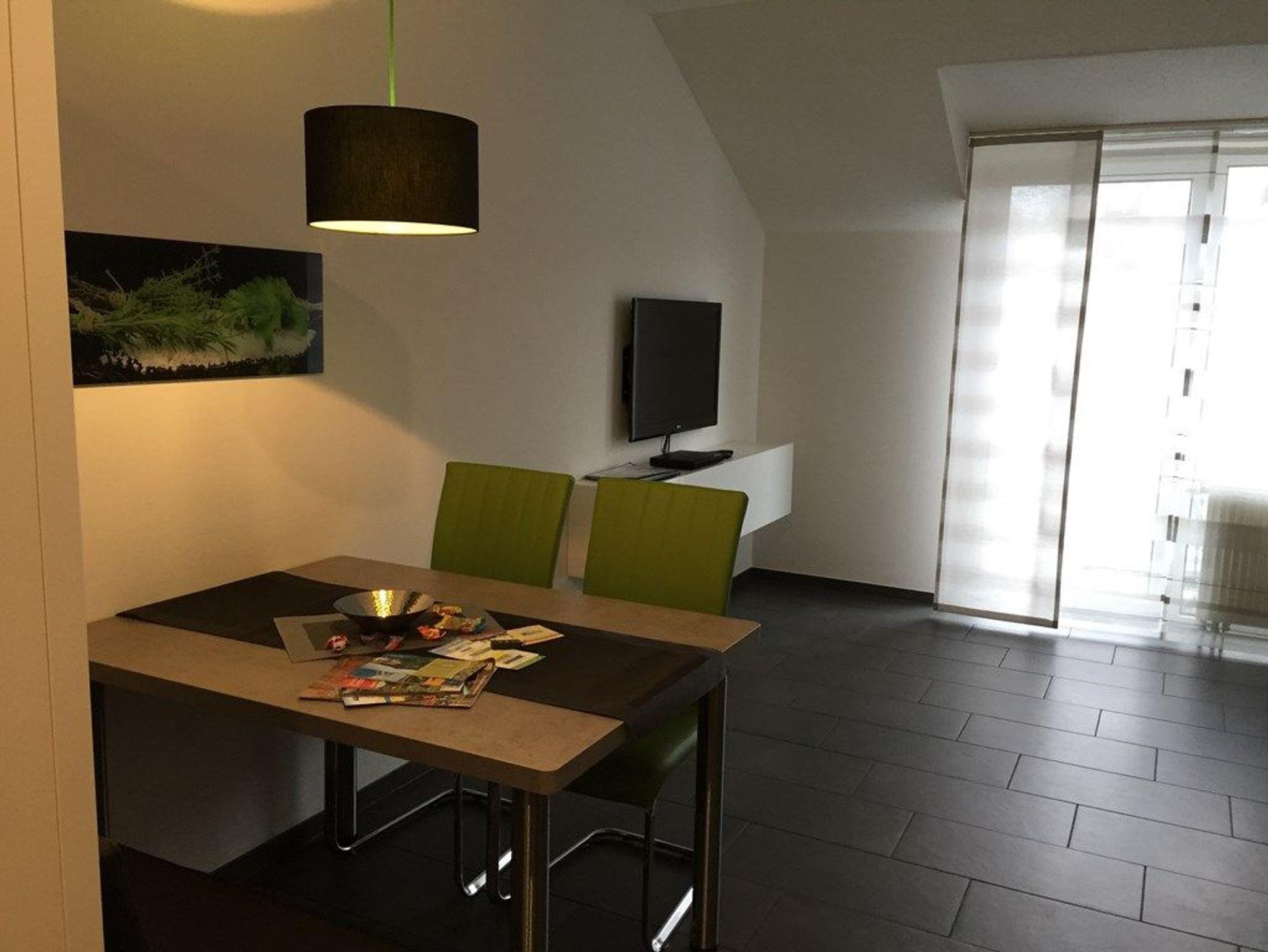 Komfortables Wohlfühlappartement grün-schwarz ausgestattet mit zwei sep. Schlafräumen mit jeweils zwei Boxspringbetten, neue Küche mit Spülmaschine und neu ausgestattetes Badezimmer, Wohnküche mit großzügigem Sofa und kleiner Essecke, Sat-TV und Balkon Richtung Regenseite, freier Eintritt für 2 Personen in die Bade- und Saunawelt AQACUR, ca. 3-4 Gehminuten entfernt, die 3. und 4. Person erhalten mit der Gästekarte Nachlass auf den Eintritt ins AQACUR