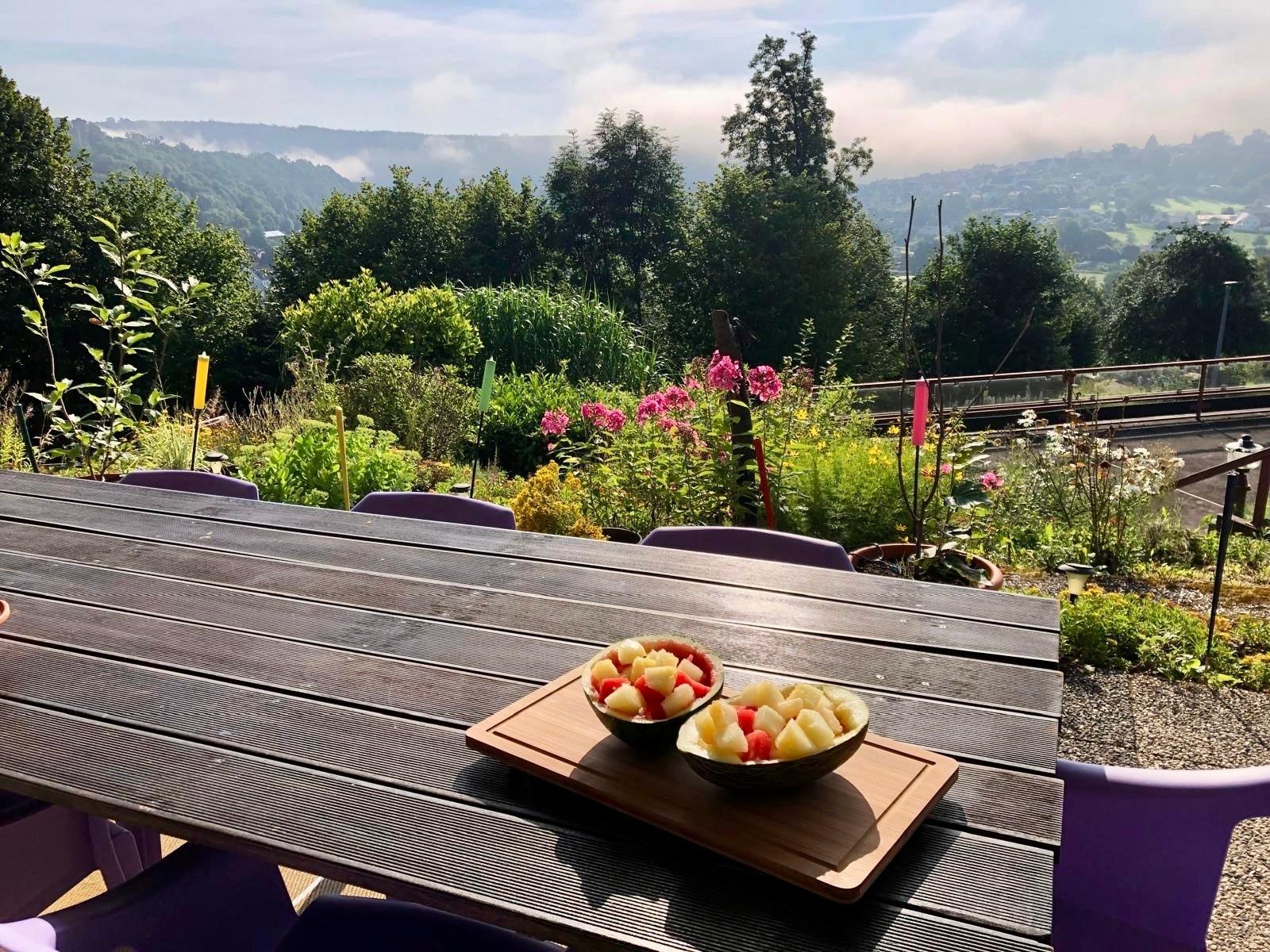 Garten: nutzen Sie sonnige Tage in unserem großen, gemeinsam genutzten Garten, der dennoch viel Privatsphäre bietet und teilweise umzäunt ist, sodass Hunde und Kinder sicher spielen können. Der Garten bietet ein fantastisches Panoramablick über Helmarshausen, einschließlich Sicht auf die Burg. Veranstalten Sie ein BBQ, backen Sie Ihre eigenen Pizzas im Außenofen oder genießen Sie einfach das schöne Wetter.