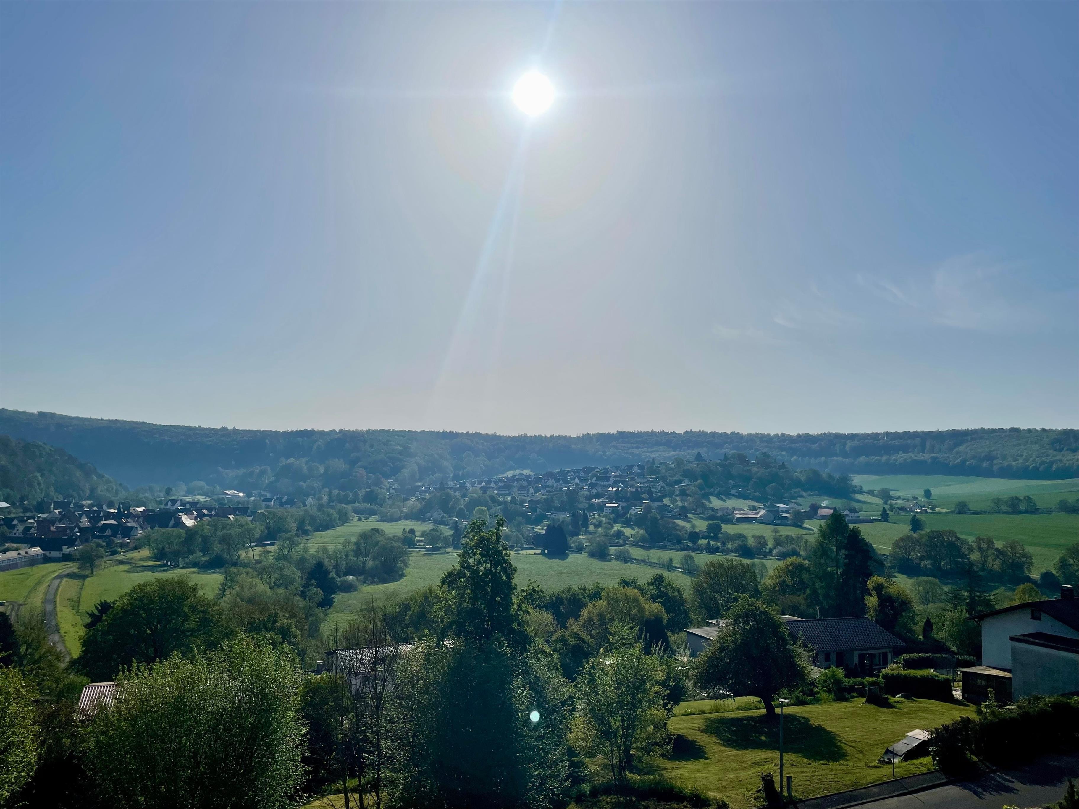 - Atemberaubende Aussicht: Genießen Sie vom Terrassenaus die herrliche Aussicht auf Wälder, Felder und die historische Burg von Helmarshausen.