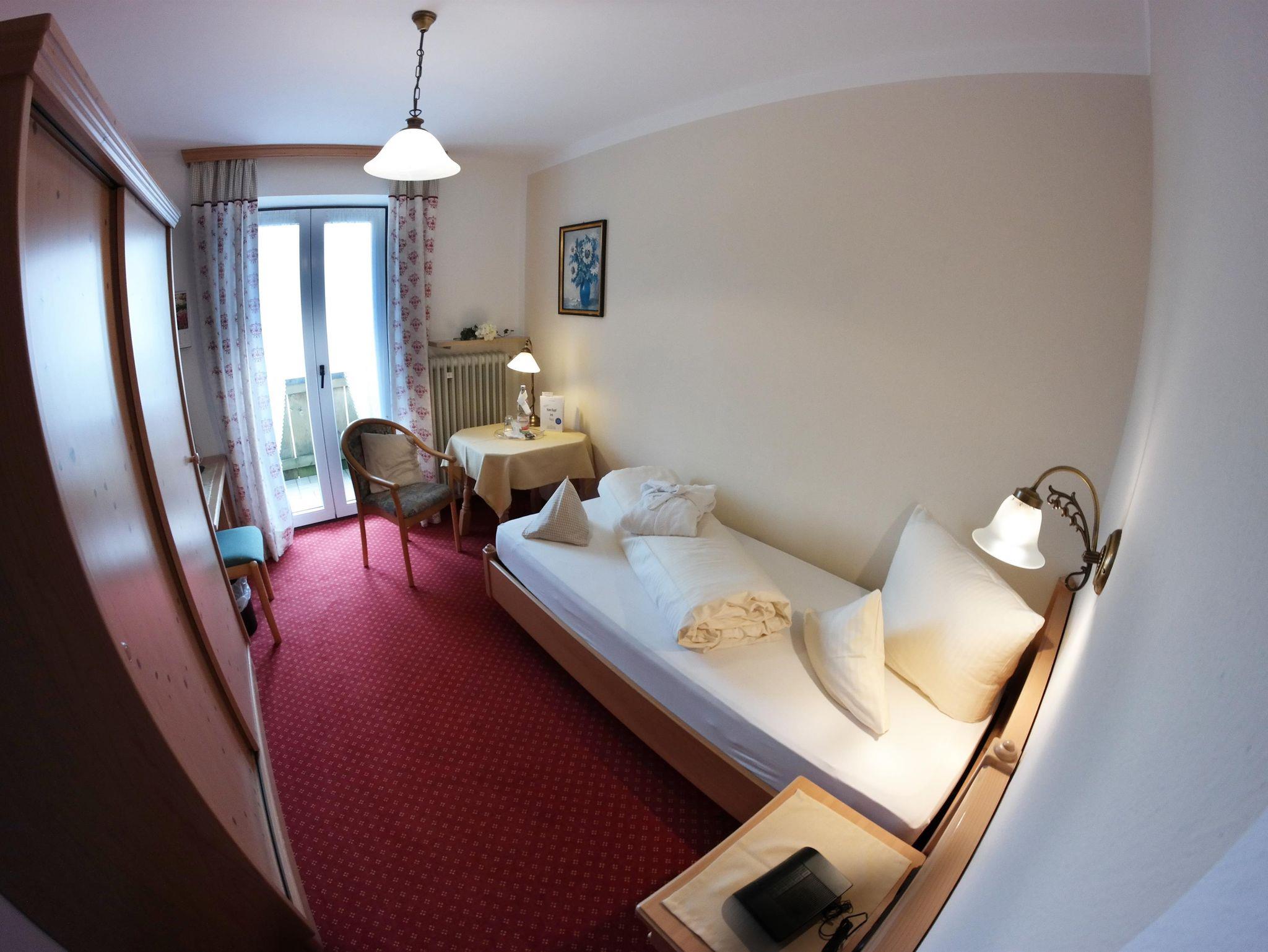 Unsere im gemütlichen Landhausstiel eingerichteten Einzelzimmer sind alle mit Dusche und WC, Radio, Farb-TV, Durchwahltelefon, Kühlschrank, Balkon ausgestattet. Es erwartet Sie ein reichhaltiges Frühstücksbuffet. Auf Wunsch bieten wir Ihnen eine Abendküche. Kuranwendungen sind im Hause erhältlich. Die Saunalandschaft mit Dampfbad, Finnischer Sauna und Bio-Kräutersauna, sowie unsere Sonnenterrasse stehen Ihnen kostenlos zur Verfügung.