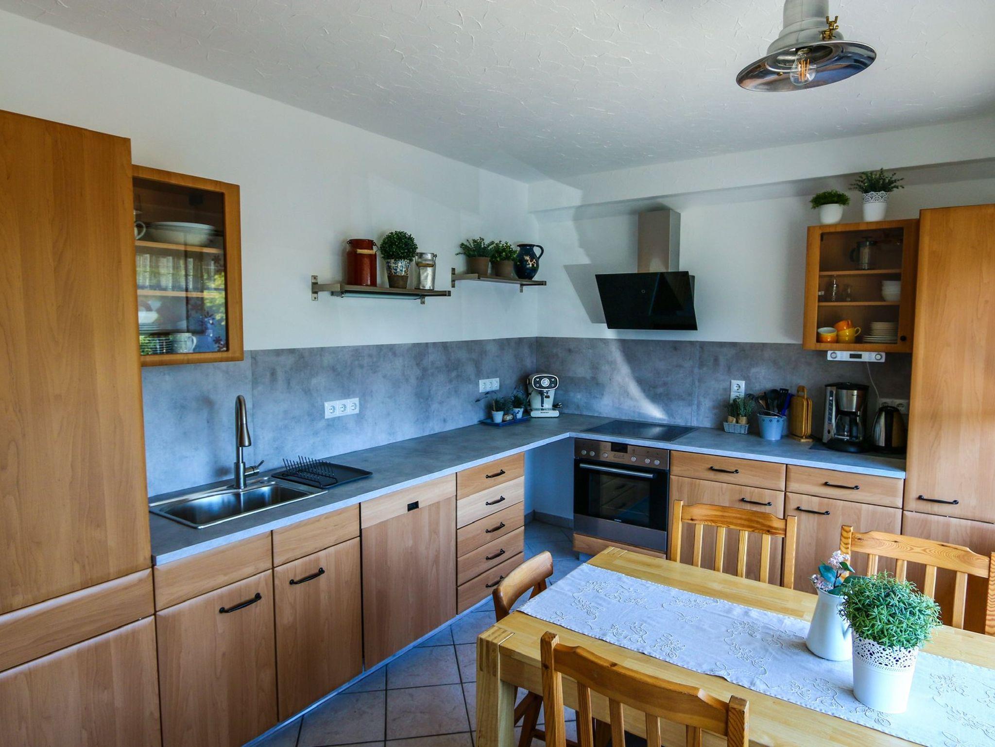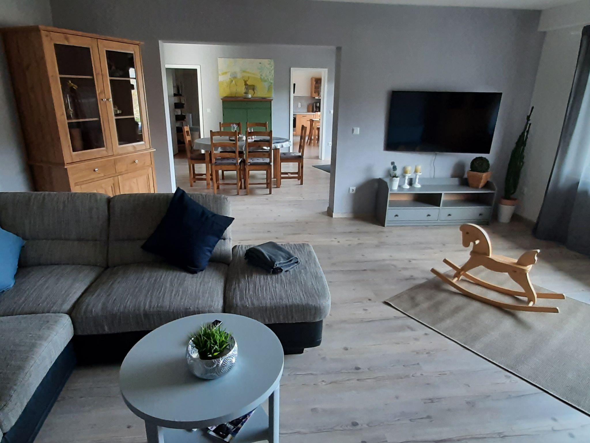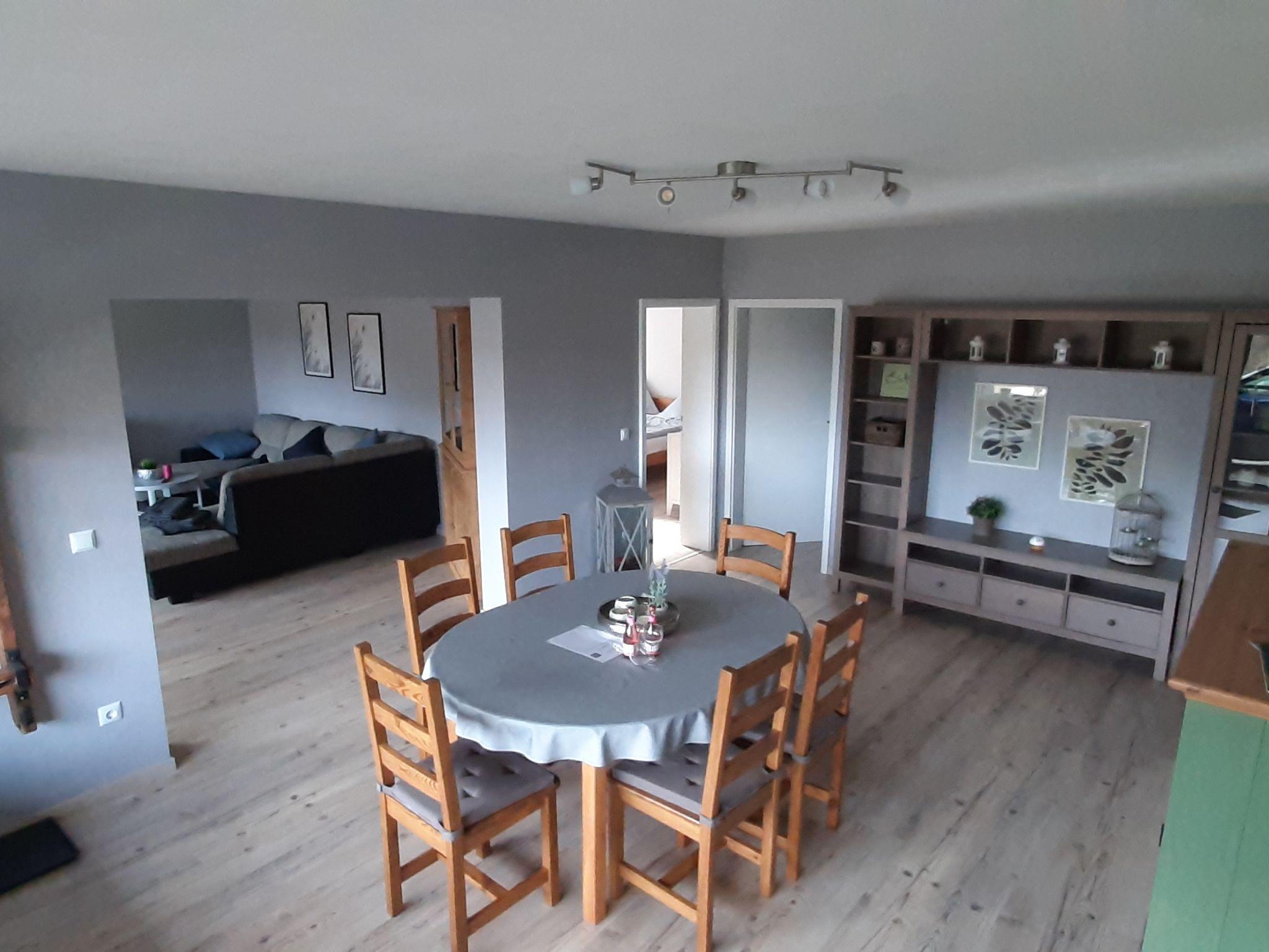 Unsere 80 m² große Ferienwohnung hat einen seperaten, ebenerdigen Eingang und ist für 1-5 Personen ausgestattet und verfügt über - Ess- und Wohnbereich mit Pelletofen- eine sehr gut ausgestattete Küche mit Spülmaschine, Kühlschrank mit Gefrierkombi - 1 Schlafzimmer mit Doppelbett 200x200 cm und Babybett 60x120 cm- 1 Kinderzimmer mit zwei Jugendbetten 90x200 cm - großes Bad mit Dusche und Badewanne.