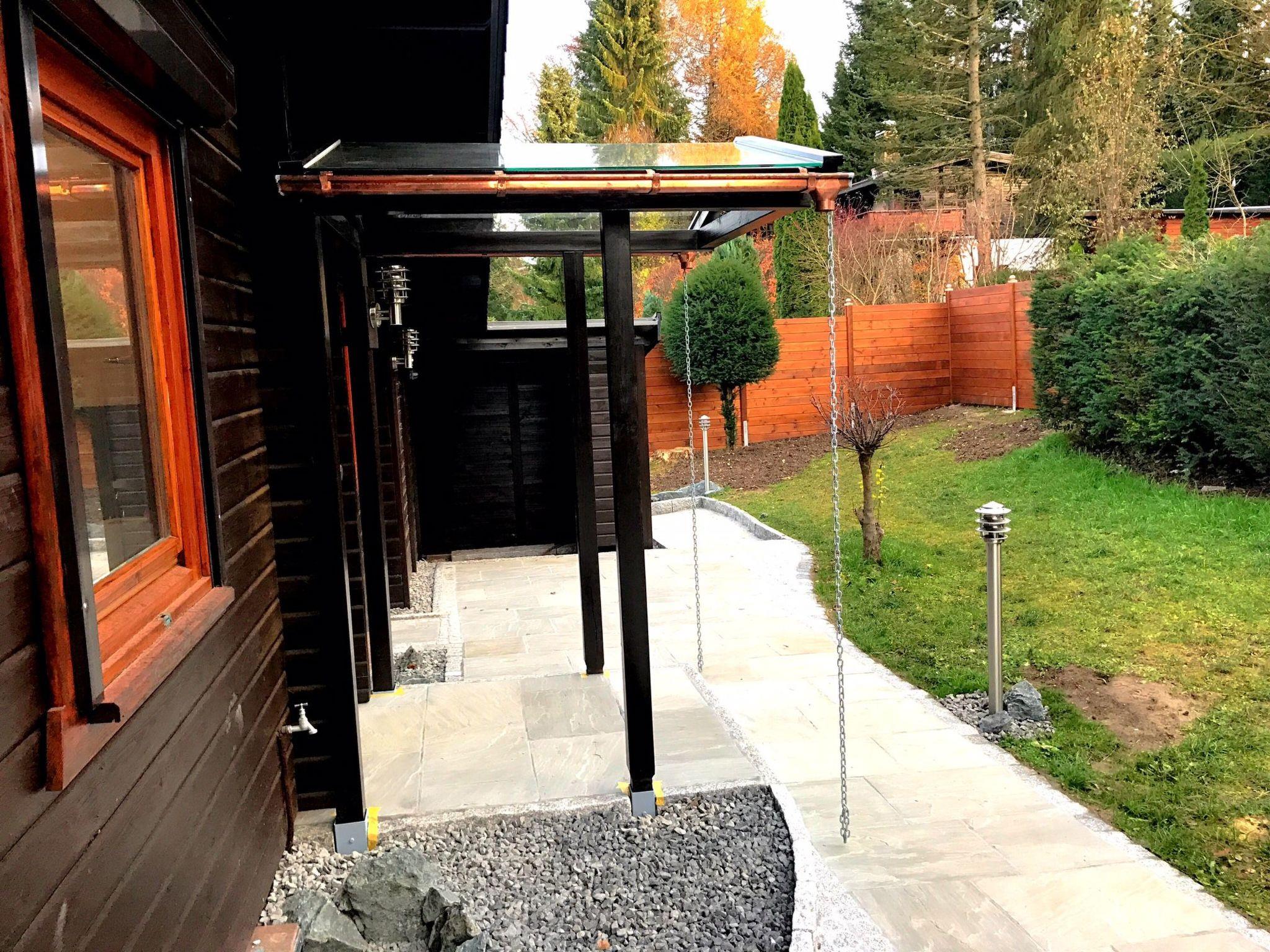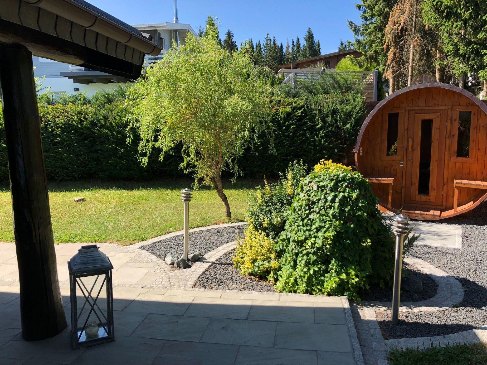 In addition, a barrel sauna was built in the garden, which not only offers 4 to 5 people wellness & relaxation, but is also a real eye-catcher in itself and offers a unique and unforgettable distant view of the mountains while taking a sauna.