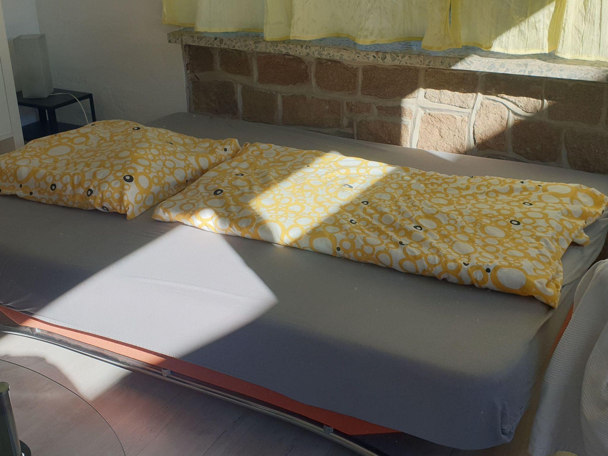 - frisch bezogenes Bettzeug in der Schlafcouch