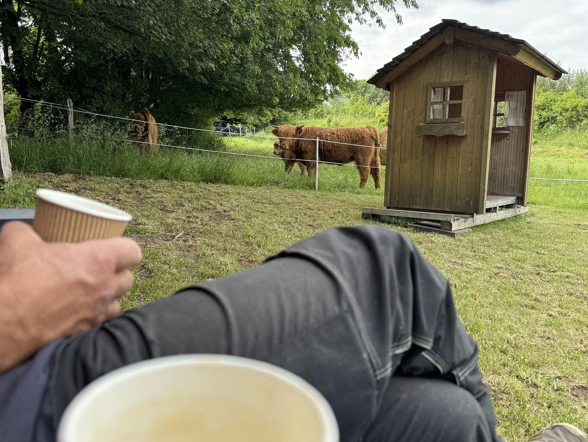 Starte den Tag mit einer heißen Tasse Kaffee am großen Panoramafenster, beobachte Pferde auf der Weide und lausche dem Zwitschern der Vögel.