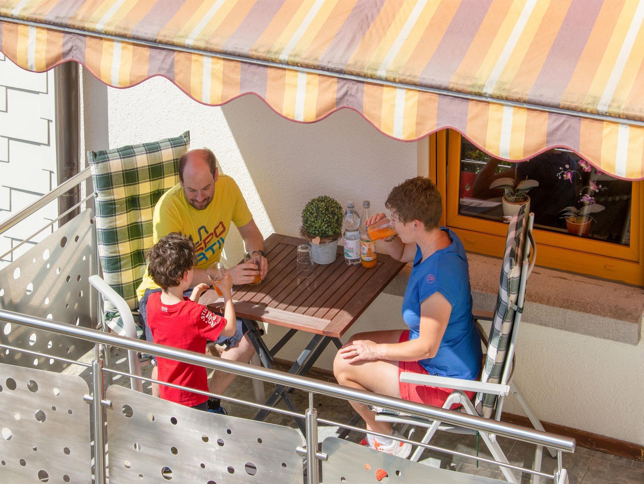 Hier haben Sie bei schönem Wetter fast den ganzen Tag über Sonne. Die angebrachte Markise kann zu etwas Schatten verhelfen.