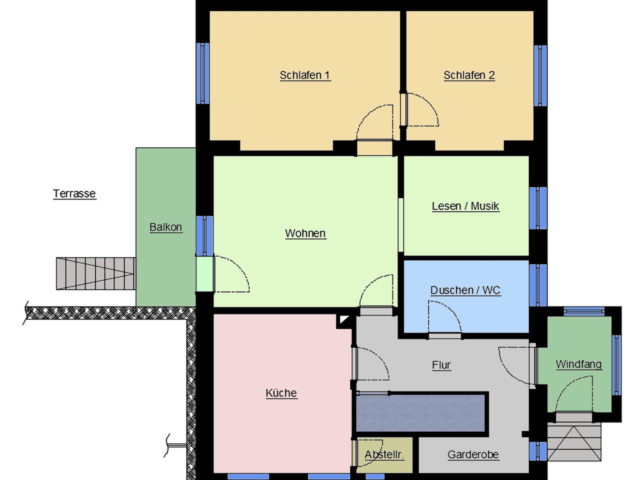 Die Küche besitzt eine Essecke und ist komplett eingerichtet. Im geschmackvoll eingerichteten Wohnzimmer befindet sich ein großer Fernseher, angrenzend gibt es noch ein kleines Lese-/Musikzimmer. Das Badezimmer hat eine Dusche und WC. Die Wohnung ist auf dem neusten Stand der Elektrotechnik mit Netzwerkanschlüssen, Lichtsteuerung über Präsenzmelder und LED-Beleuchtung. Alle relevanten Räume sind mit Rauchwarnmelder ausgestattet.