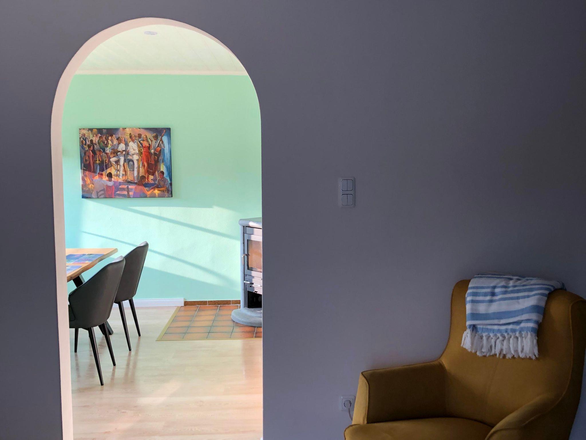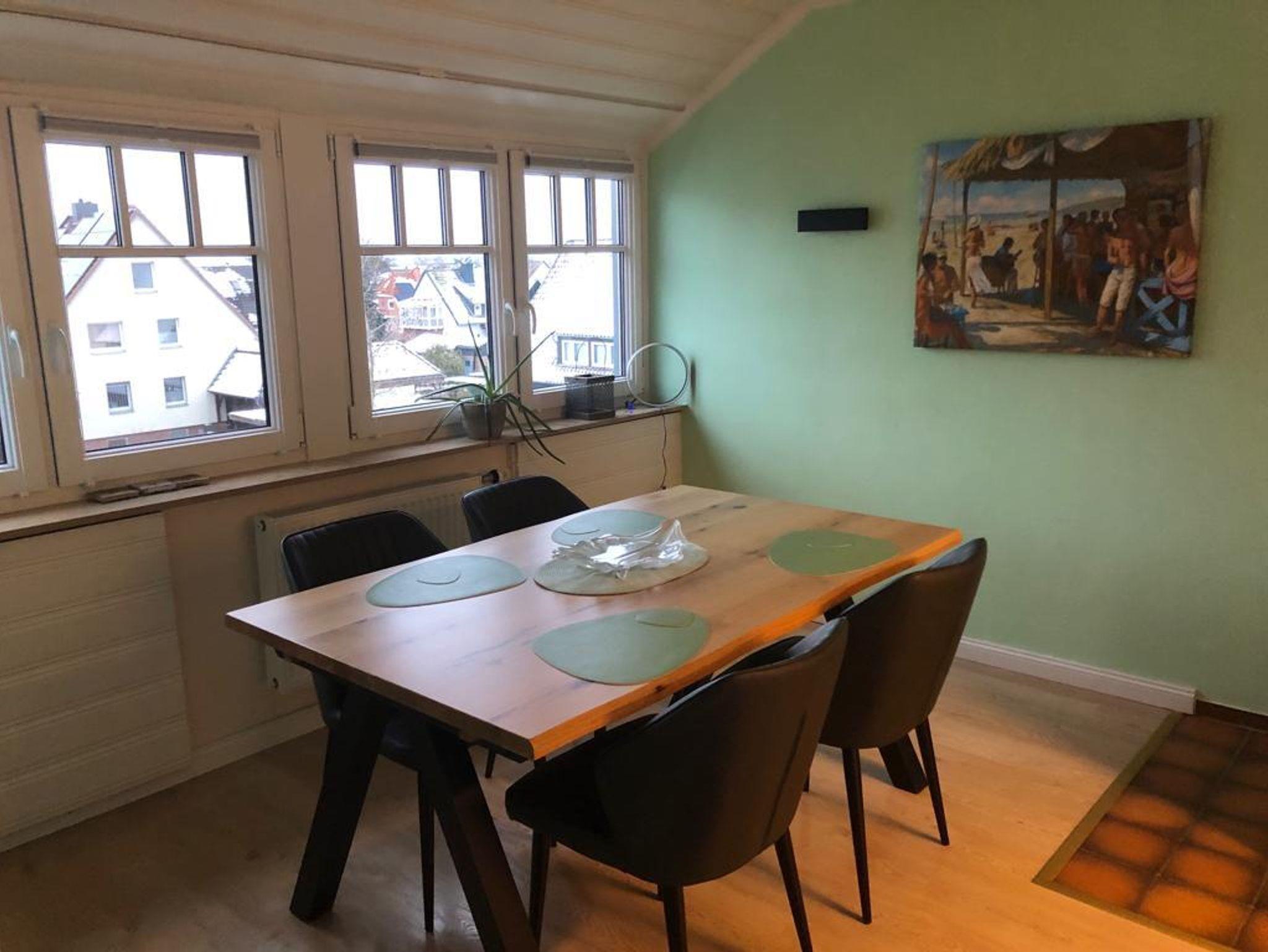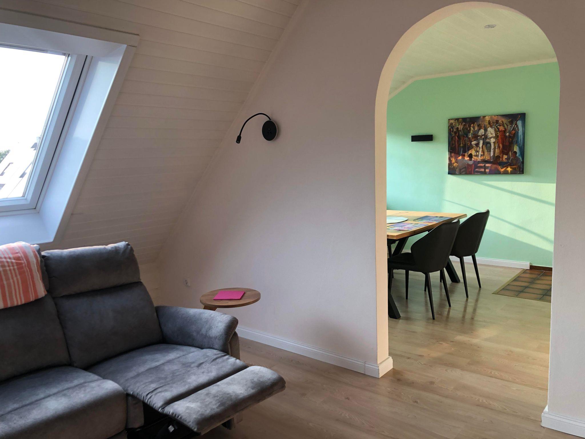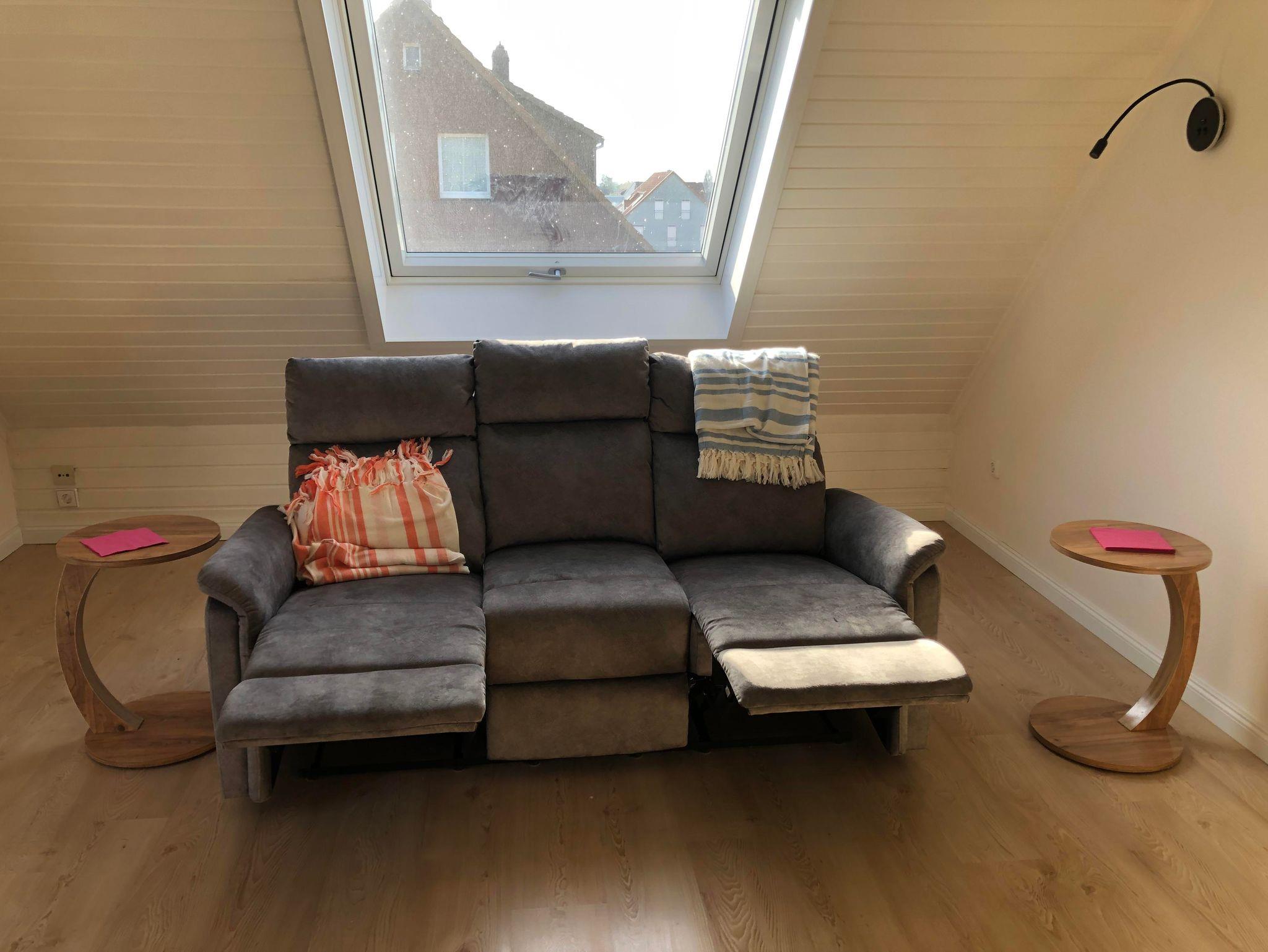 Unsere Ferienwohnung liegt direkt in Bad Nenndorf. Sie befindet sich in der 2. Etage eines modernen 3-Familienhauses in einer ruhigen Straße. Das Dachgeschoss ist sonnendurchflutet und schön hell. Alle Zimmer sind individuell und modern eingerichtet. Die Wohnung bietet insgesamt 3 Zimmer. Ein weiträumiges Wohnzimmer bietet eine schöne Essecke, der Fernsehbereich hat einen großen Flachbild TV, sowie mehrere Sitzgelegenheiten. Angrenzend gelangt man auf einen nach Süden ausgerichteten Balkon. Neben dem geräumigen Schlafzimmer mit Doppelbett befindet sich ein weiteres Schlafzimmer Zimmer mit 2 Einzelbetten. Das Tageslicht- Badezimmer ist modern und besitzt sogar eine Badewanne. In der Küche finden Sie eine neue und moderne Einbauküche mit viel Komfort. Gäste der Wohnung dürfen auch gerne in unserem Vorgarten verweilen, hier stehen Sitzgelegenheiten und 2 Liegestühle zur Verfügung. Zudem sind Hunde gerne willkommen. Die Wohnung verfügt über eine Wall-Box.