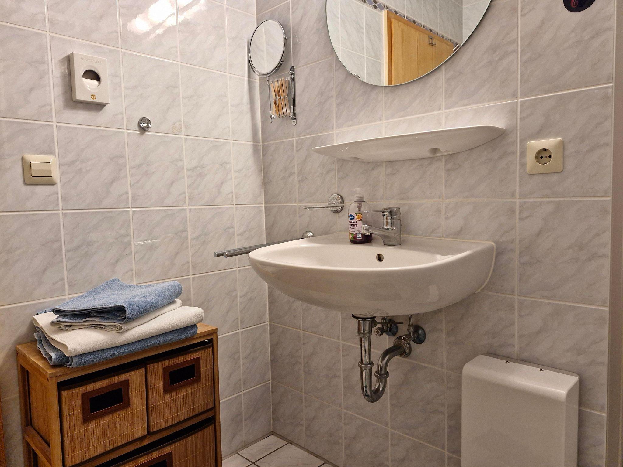 Im Zentrum von Bad Nenndorf finden Sie diese ruhige 2-Zimmer Wohnung. Die Ferienwohnung bietet auf 45 Quadratmetern Platz für bis zu 2 Personen. Im Wohnzimmer befindet sich eine gemütliche Sitzgruppe mit Kabel TV und Radio, ein Essbereich und die angrenzende offene Wohnküche. Die Küche ist mit Backofen, Herd, Kühlschrank, Gefrierfach und Wasserkocher ausgestattet. Das separate Schlafzimmer ist mit einem 200cm x 180cm großem Doppelbett ausgestattet. Das Badezimmer verfügt über Waschbecken, Dusche und WC sowie Haarföhn. Der Balkon ist vom Wohzimmer aus begehbar, ist Richtung Süd - Westen ausgrichtet und bietet eine Sitzgruppe. Ein PKW Stellplatz ist hinter dem Haus vorhanden. Sie haben die Möglichkeit, Fahrräder im Keller abzustellen. Auch eine Waschmaschine ist vorhanden.
