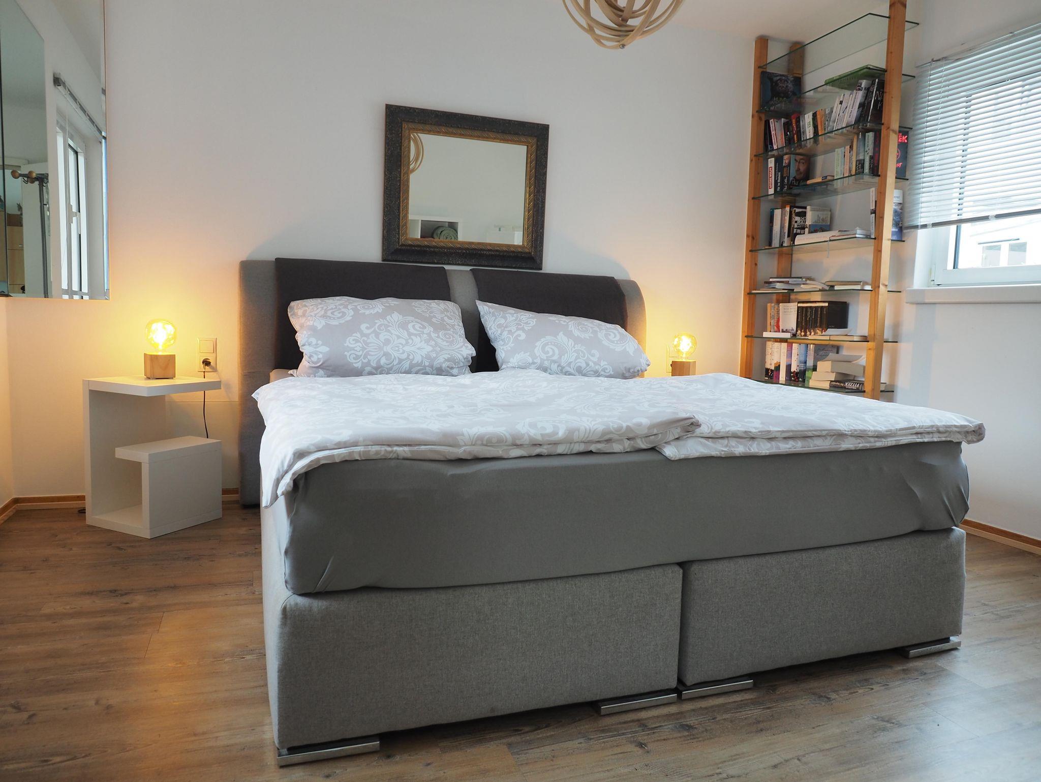 Wir heißen Sie herzlich willkommen in unserer Ferienwohnung Wohnen überm Atelier. Sie können bequem mit dem Auto bis vor die Außentreppe fahren, die Sie auf die erste Etage in unsere lichtdurchflutete Wohnung führt.