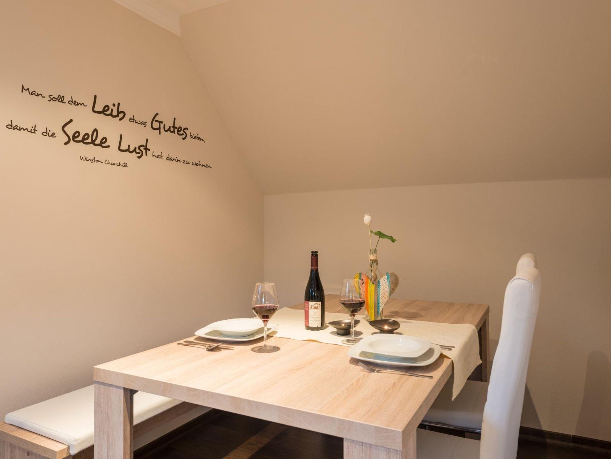 Willkommen in der Ferienwohnung Rebenblick, die im Dachgeschoss (2. Obergeschoss) liegt und Ihnen einen herrlichen Blick in die Weinreben bietet. Mit einer Wohnfläche von 53 m² ist diese Wohnung ideal für bis zu 4 Gäste und schafft eine gemütliche Atmosphäre in ansprechenden Brauntönen.